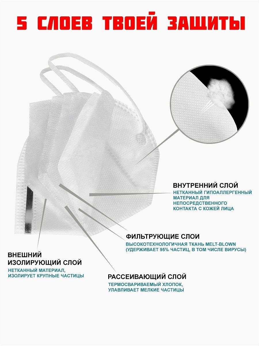 Респиратор гигиенический KN95, FFP2, размер Универсальный, 5 шт.