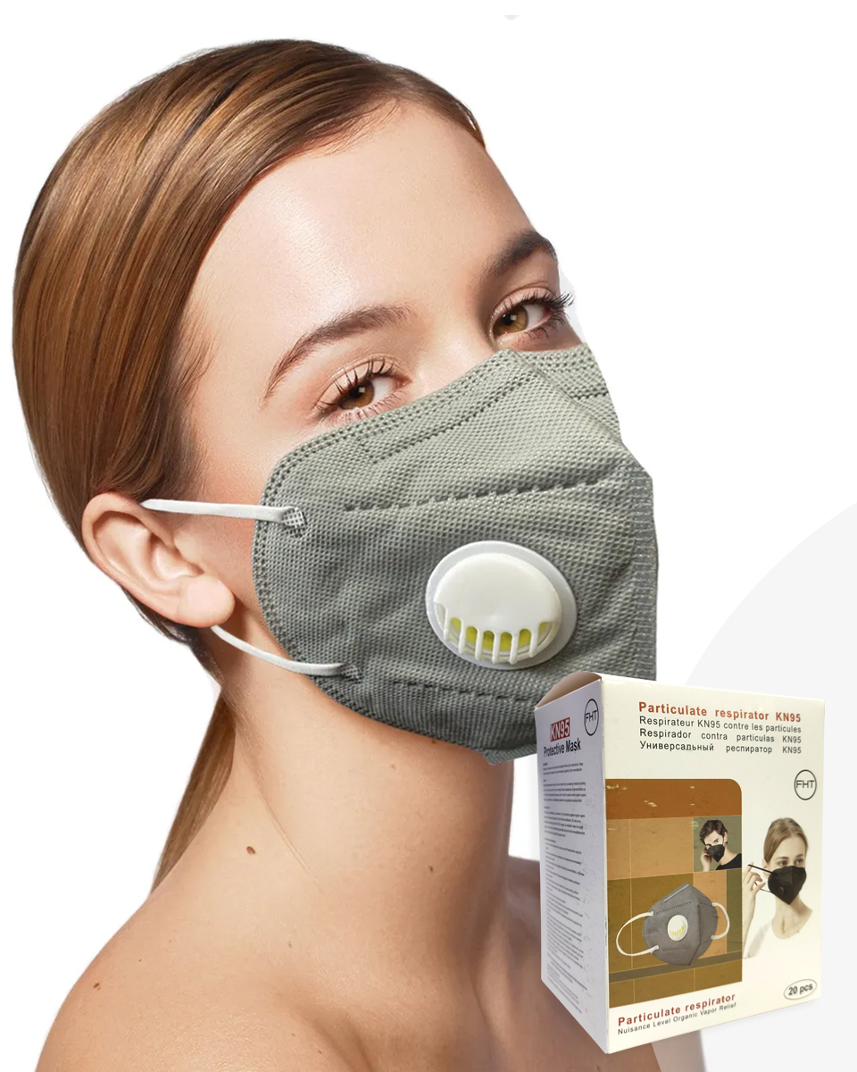 Респиратор универсальный KN95 с клапаном GREY серый ГОСТ Р, FFP2, размер Универсальный, 10 шт.