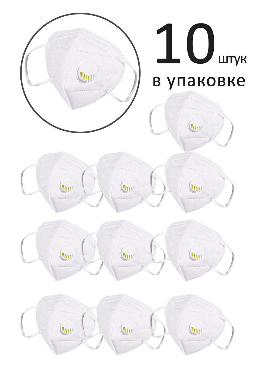 Респиратор универсальный KN95 с клапаном WHITE белый ГОСТ Р, FFP2, размер Универсальный, 10 шт.