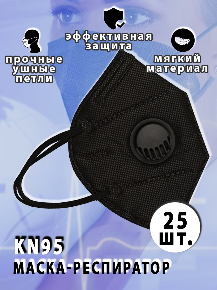 Респиратор универсальный KN95 Респиратор с клапаном KN 95, FFP2, размер Универсальный, 25 шт.