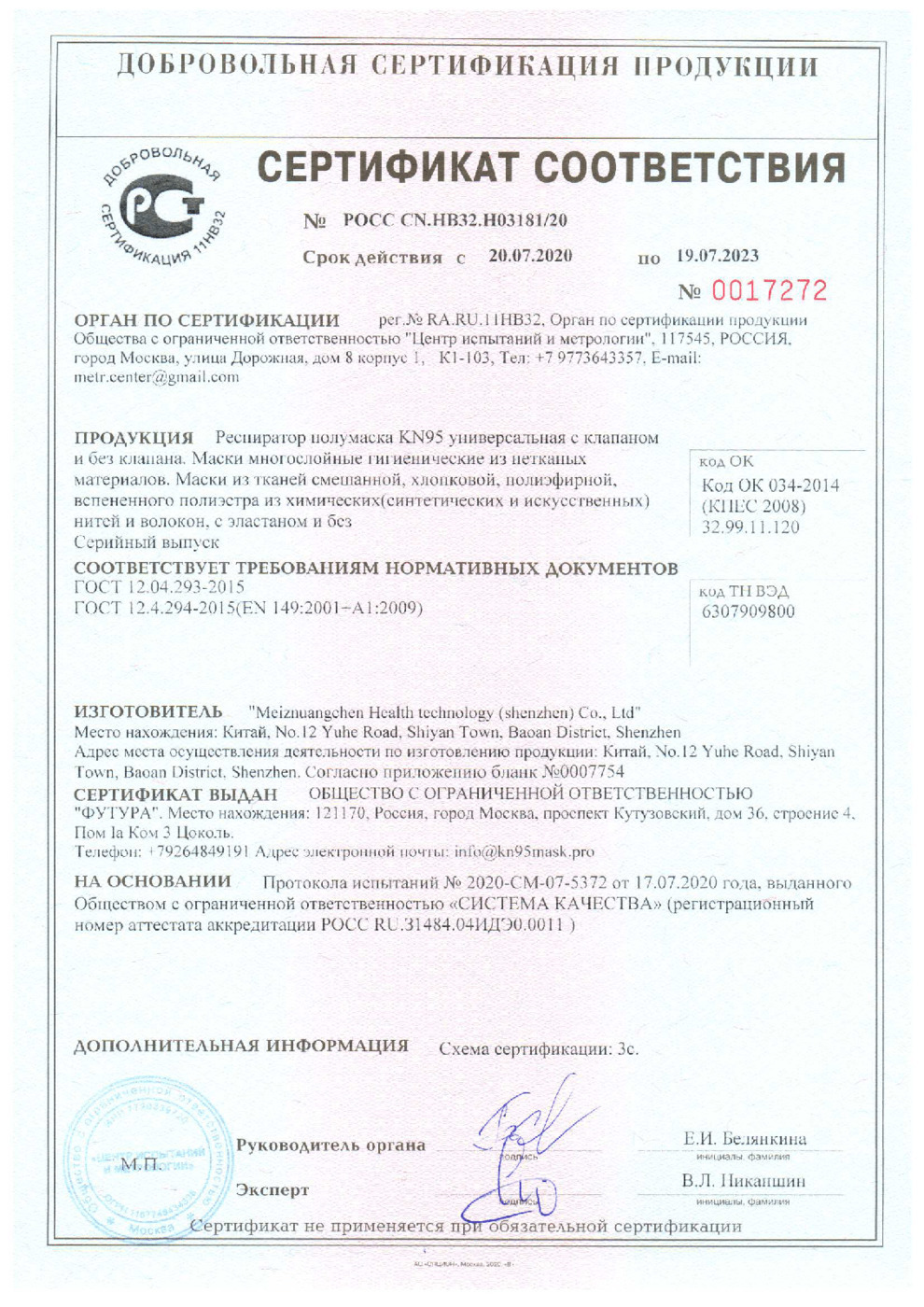 Респиратор универсальный KN95, FFP2, 1 шт.