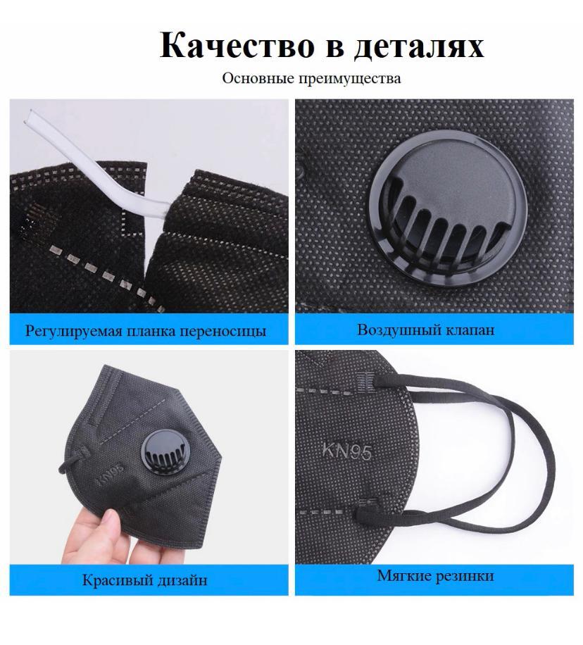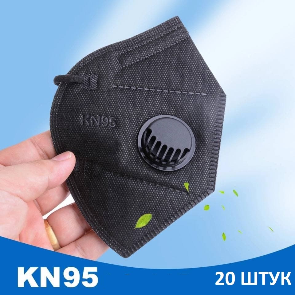 Респиратор универсальный KN95 с клапаном BLACK черный ГОСТ Р, FFP2, размер Универсальный, 5 шт.