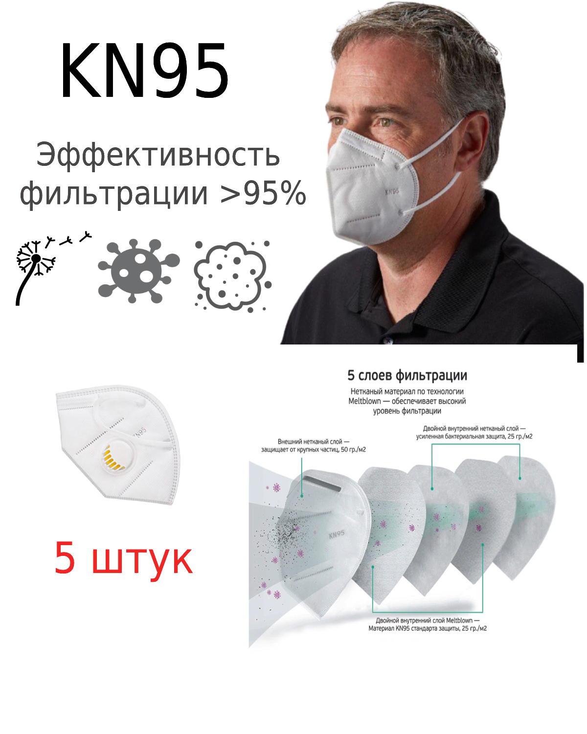 Респиратор универсальный KN95, FFP2, размер Безразмерные, Универсальный, 5 шт.