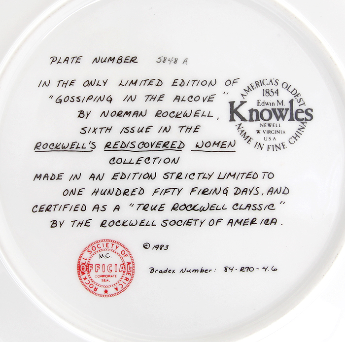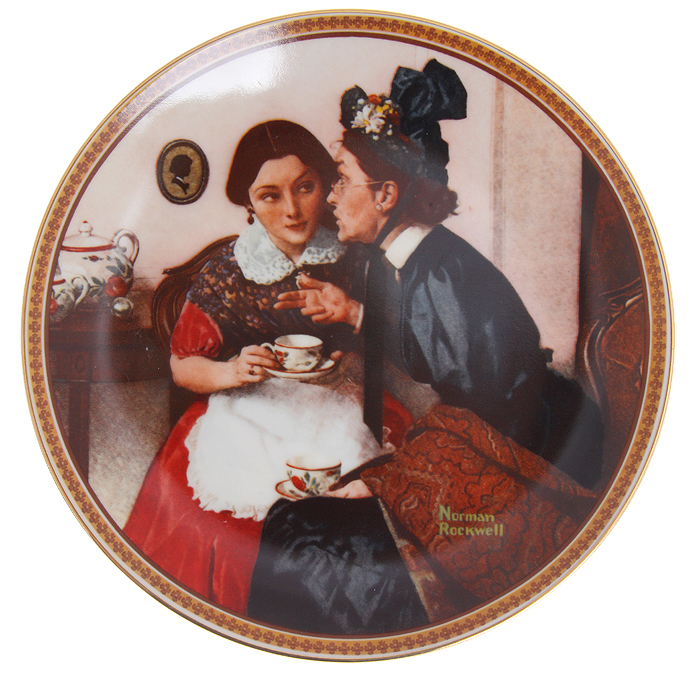 Норман Роквелл. "Сплетни в нише", декоративная тарелка. Фарфор, деколь, золочение. Knowles, США, 1983 год