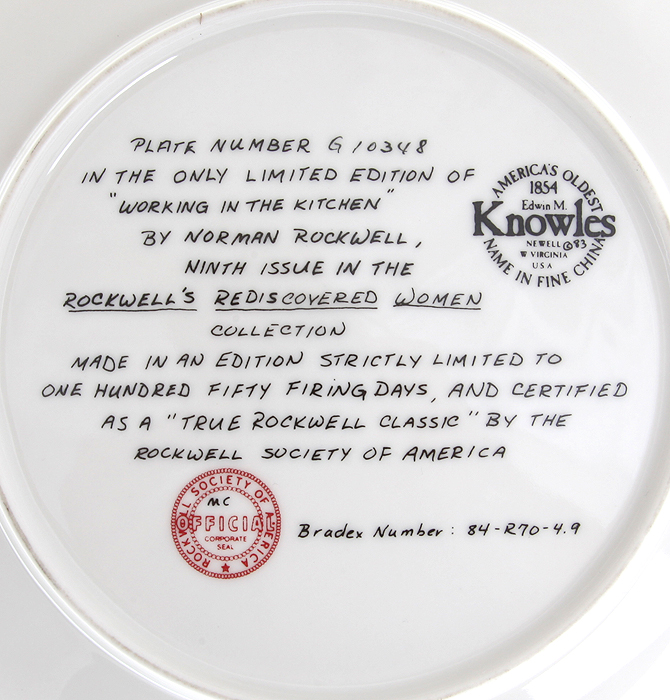 Декоративная коллекционная тарелка "Открывая женщин заново: Работа на кухне". Фарфор, деколь. США, Edwin M.Knowles China Company, Норман Роквелл, 1983