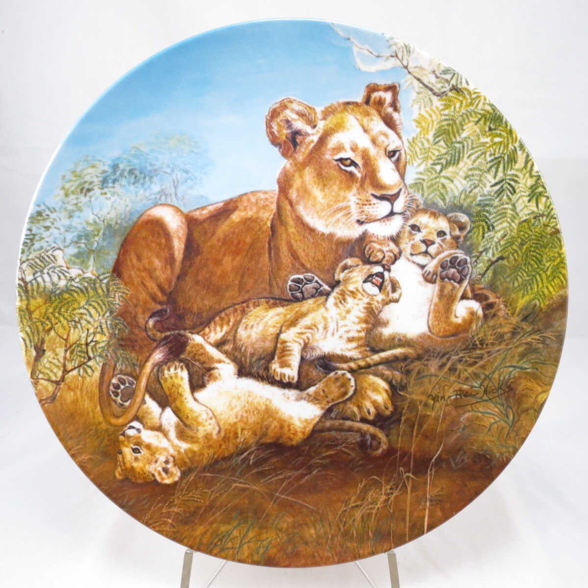 Декоративная тарелка "Знаки Любви: Под Бдительным Присмотром. Львы". Фарфор, деколь. США, Edwin M.Knowles China Company, Ян-Рей Хикс, 1981
