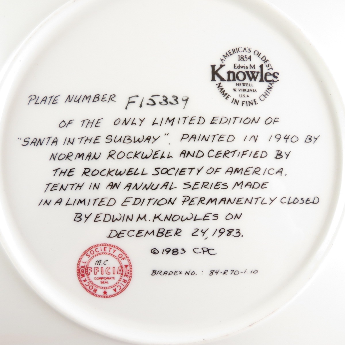 Декоративная коллекционная тарелка "Новогодняя серия: Рождество 1983 - Санта в метро". Фарфор, деколь. США, Edwin M.Knowles China Company, Норман Роквелл, 1983