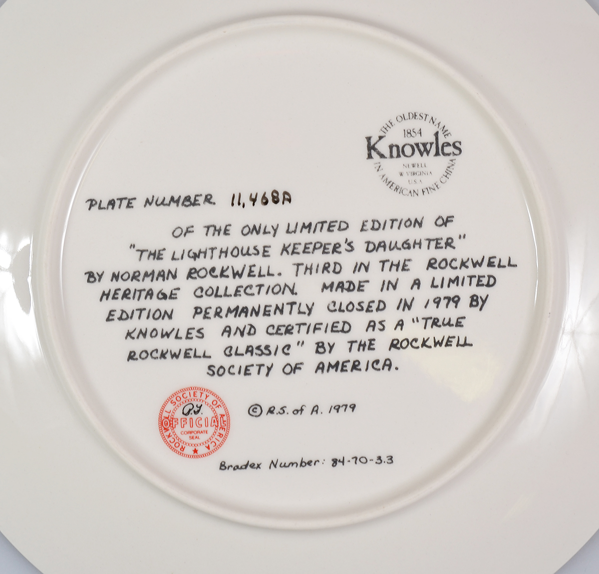 Норман Роквелл "Дочь смотрителя маяка", декоративная тарелка. Фарфор, деколь. Knowles, США, конец ХХ века