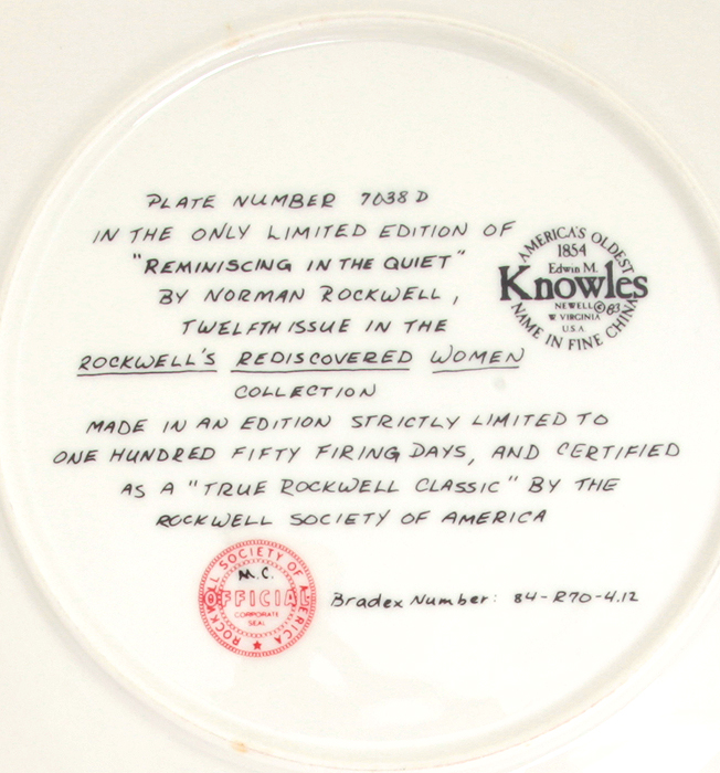 Норман Роквелл. "Скромные воспоминания", декоративная тарелка. Фарфор, деколь, золочение. Knowles, США, 1983 год