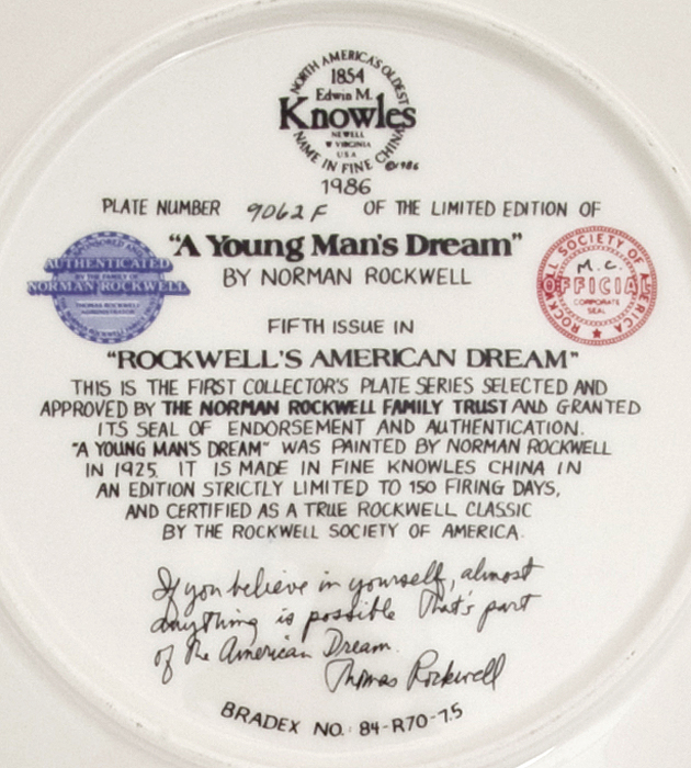 Норман Роквелл. "Мечты молодого человека", декоративная тарелка. Фарфор, деколь, золочение. Knowles, США, 1986 год