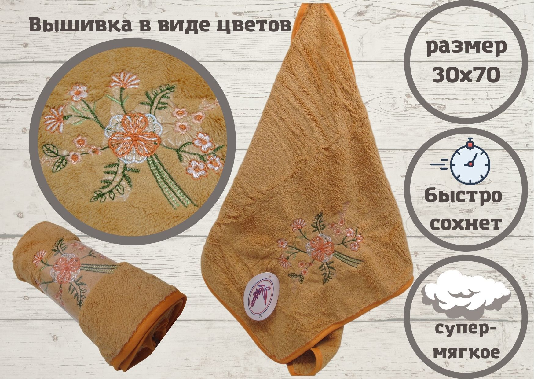 Гостевое полотенце, Полотенце для ванной Koloco Цветы Микрофибра 30x70 см, 1 шт.