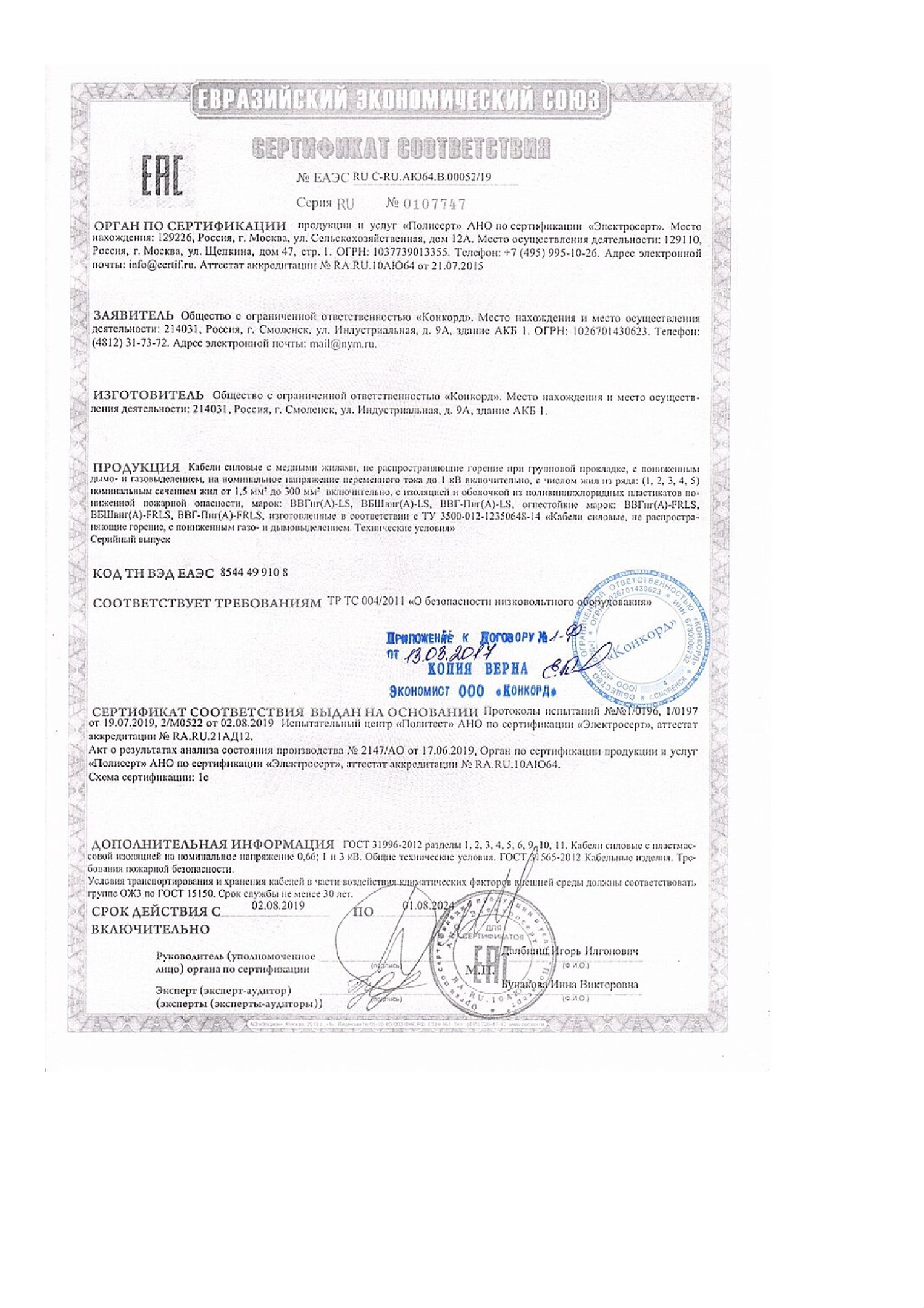 Кабель ВВГнг(А)-LS 4х1,5 (N) – 0,66 (Конкорд)