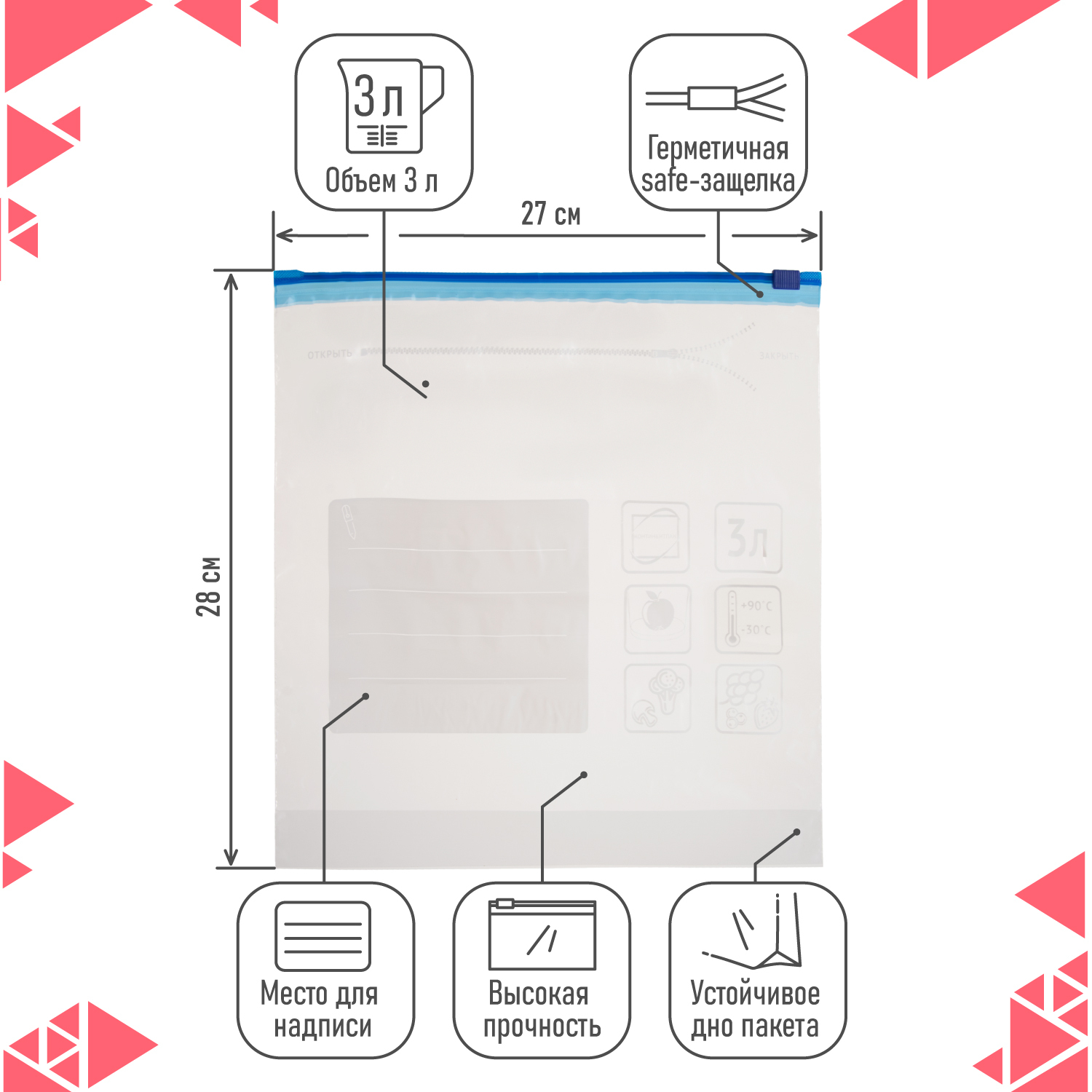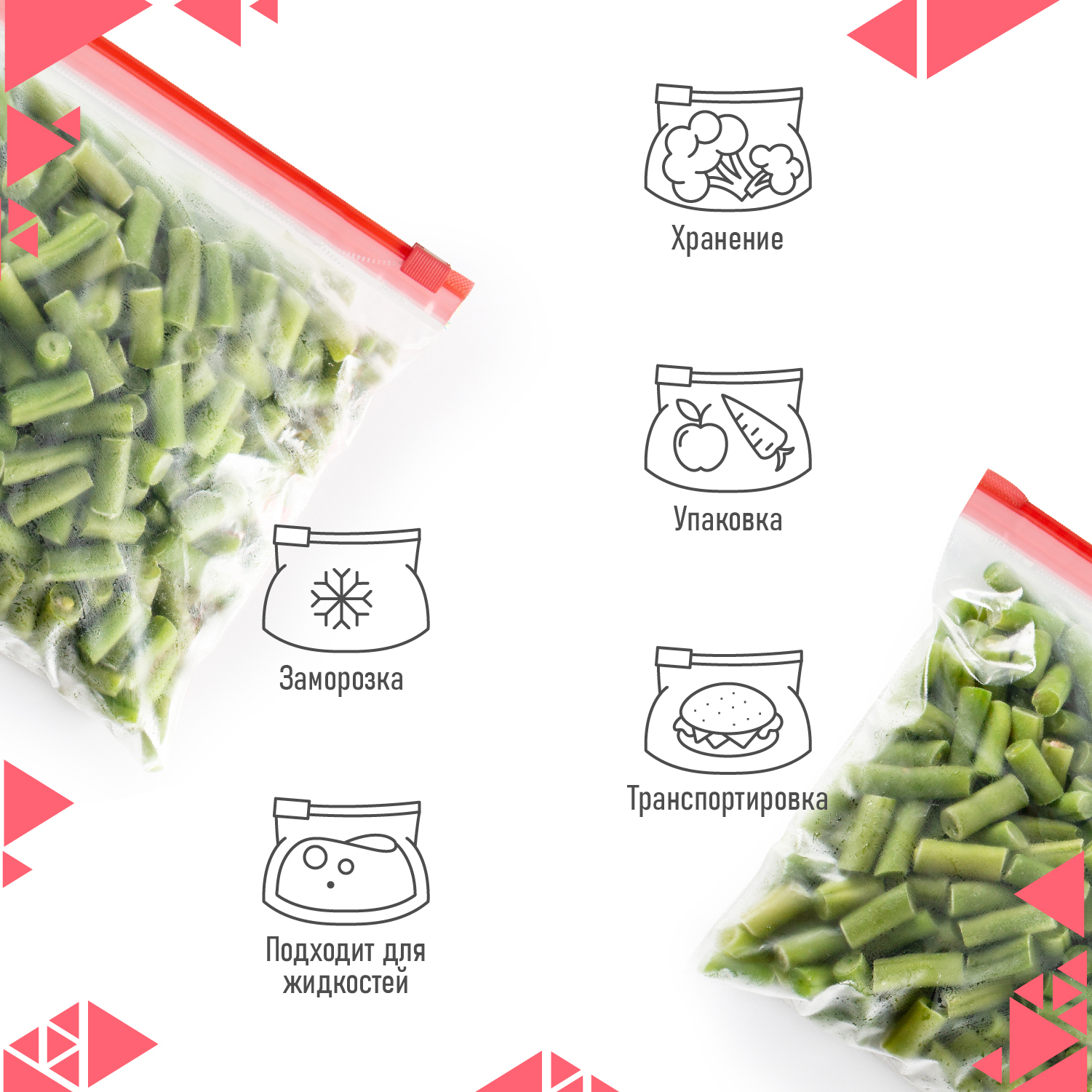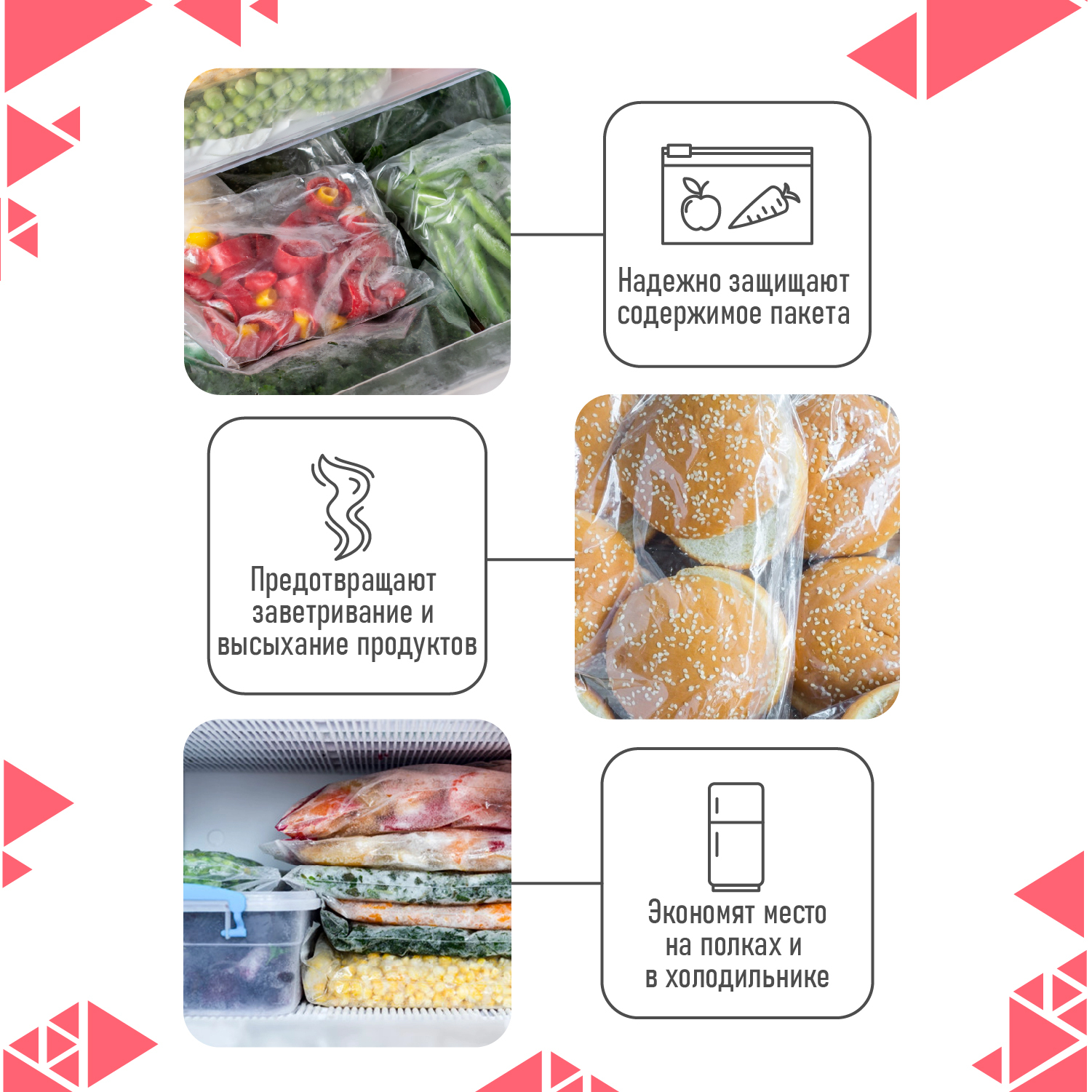 Пакет для хранения продуктов, Пакеты для заморозки КонтинентПак, 4x6 см