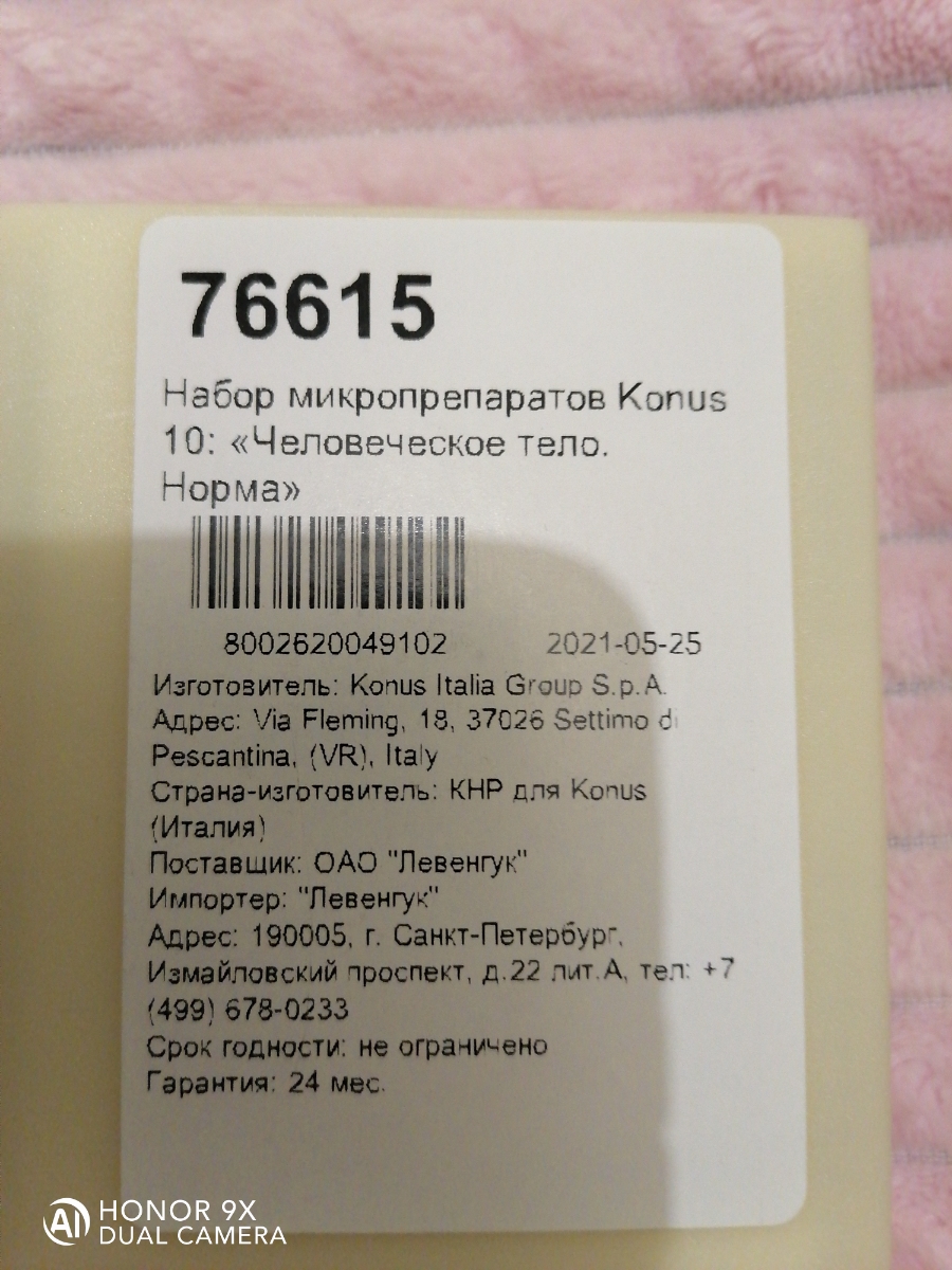 Набор микропрепаратов Konus 10 "Человеческое тело. Норма"