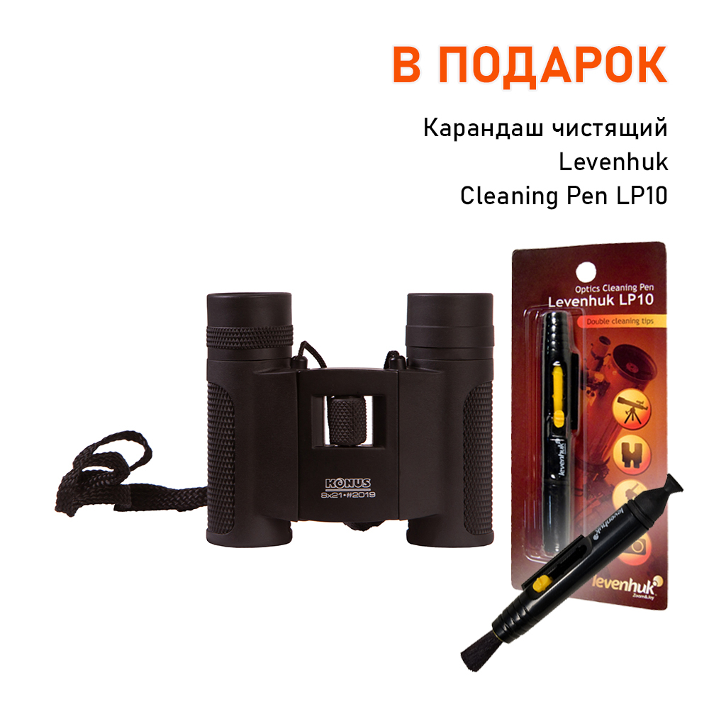 Бинокль Konus Next 2 8x21 + В ПОДАРОК Карандаш чистящий Levenhuk Cleaning Pen LP78 8x 21мм