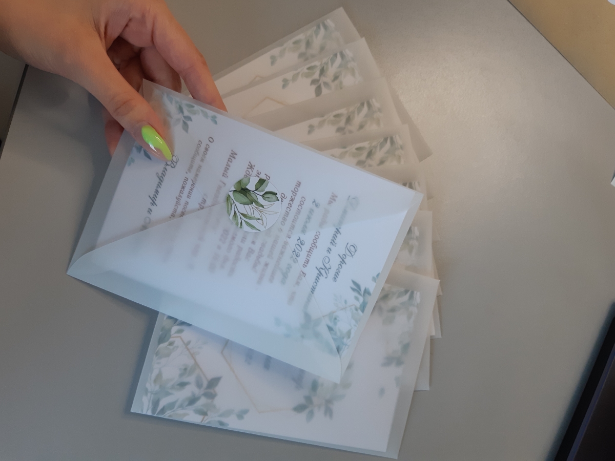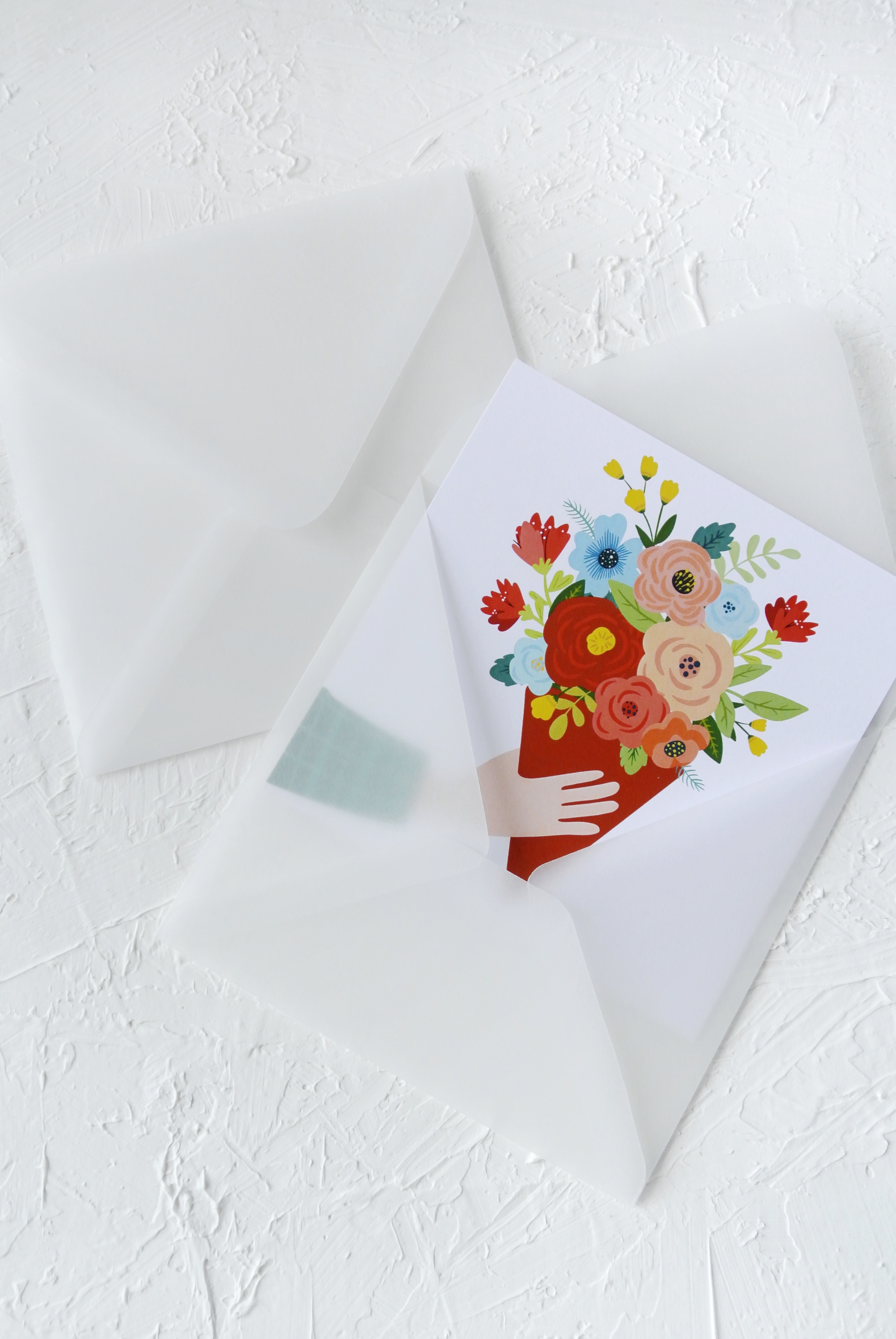 Конверт из кальки, полупрозрачные конверты С6 (114*162 мм), БЕЗ КЛЕЯ, комплект 10 штук