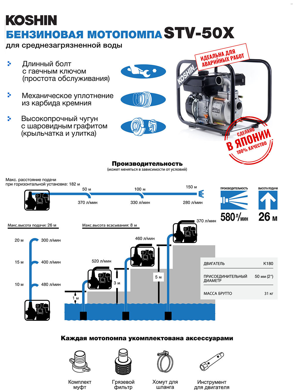 Koshin STV-80X Мотопомпа бензиновая для слабо и среднезагрязненной воды