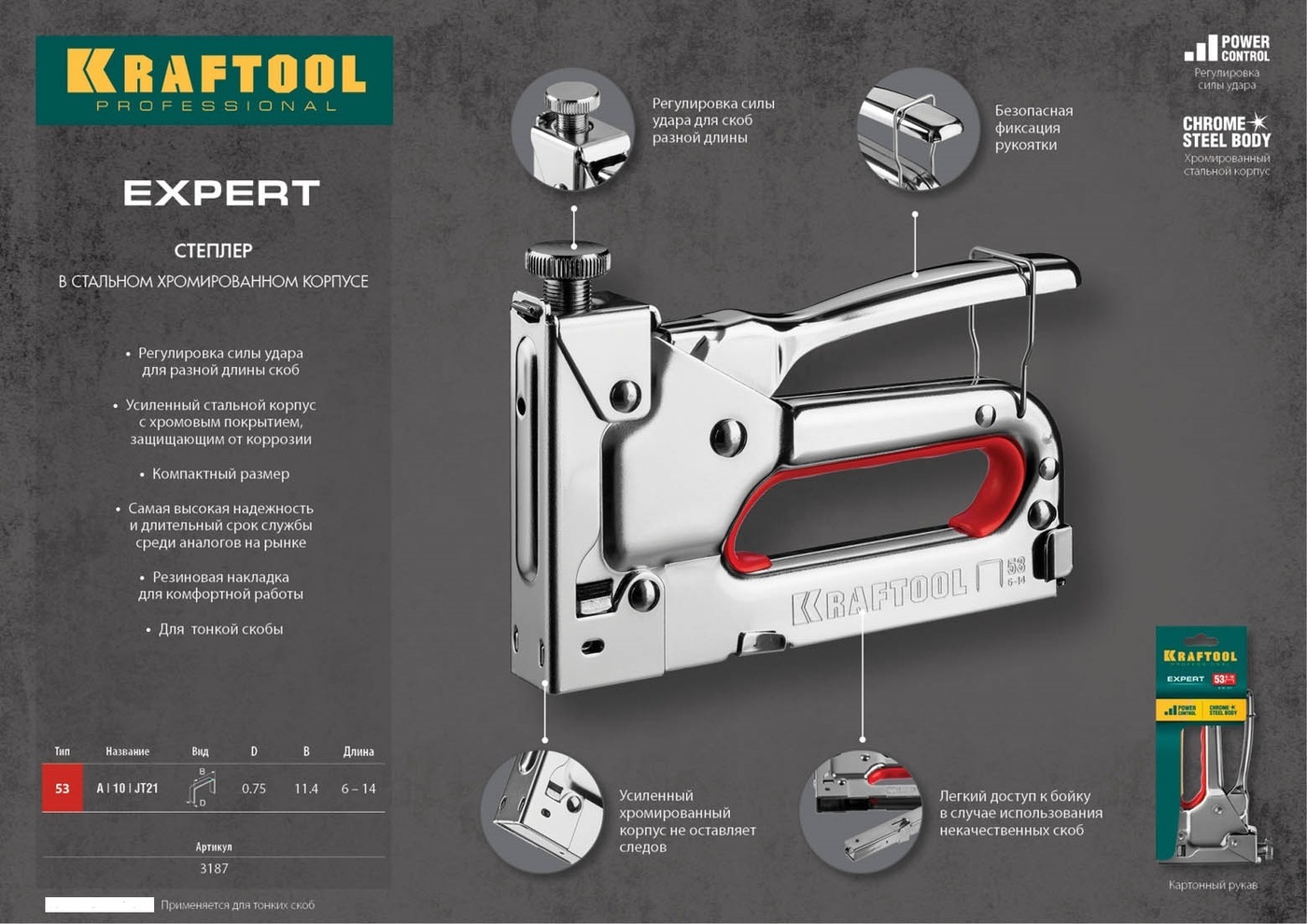 KRAFTOOL Expert-53 cтеплер стальной, тип 53