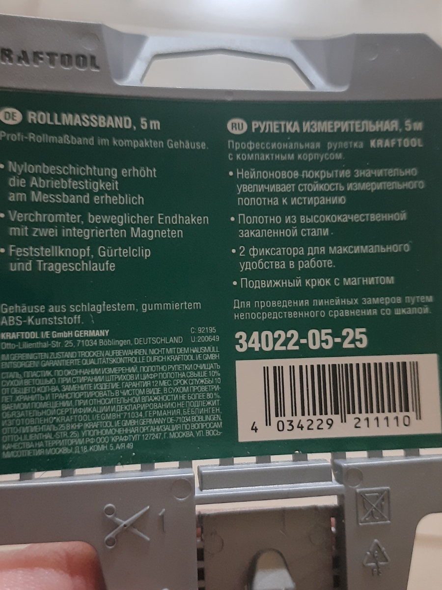 Измерительная рулетка строительная Kraftool 5м x 25мм