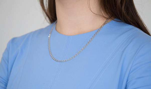 Серебряная цепочка на шею Красцветмет NC-22-076-3-0-50 с плетением двойной ромб, размер 60 мм