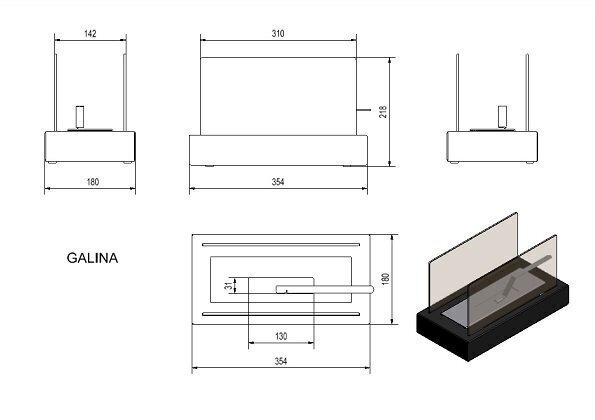 Настольный биокамин Kratki Galina TUV (черный) c настоящим огнем