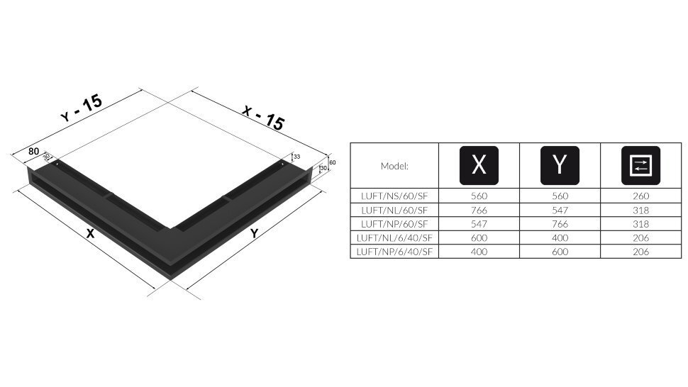 Каминная вентиляционная решетка Kratki черная 32C (11*32)
