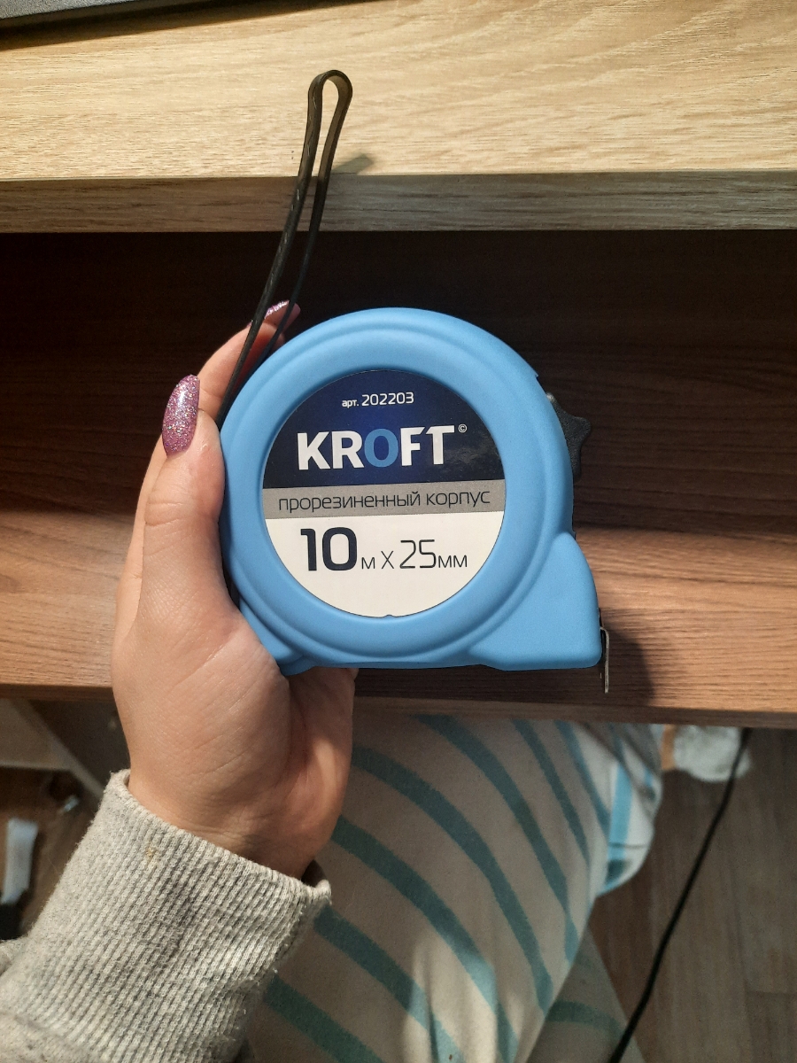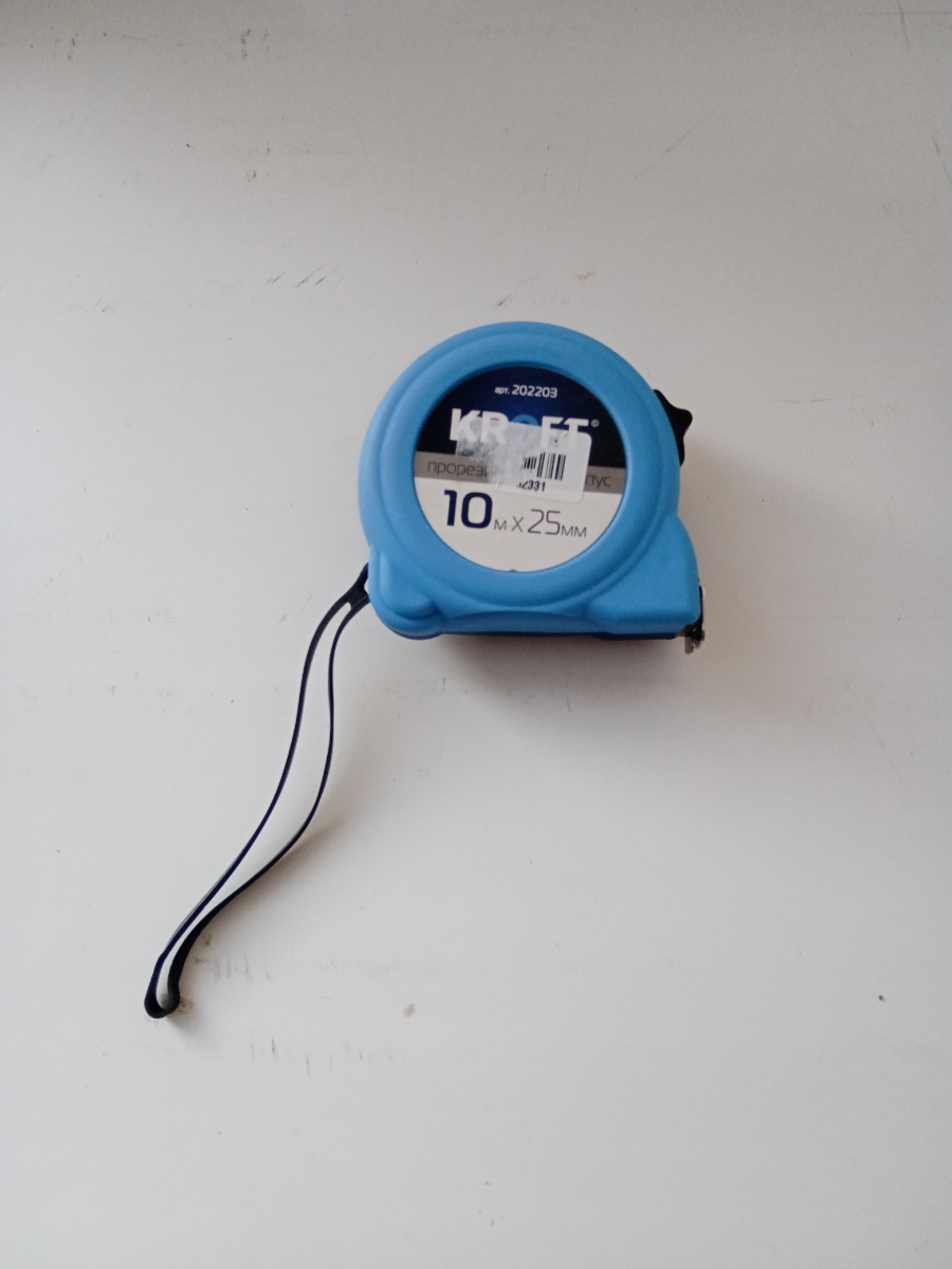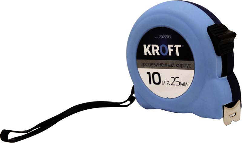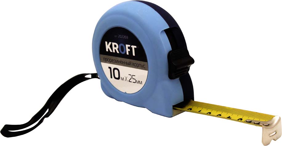 Рулетка "Kroft" прорезиненная, 10 м х 25 мм
