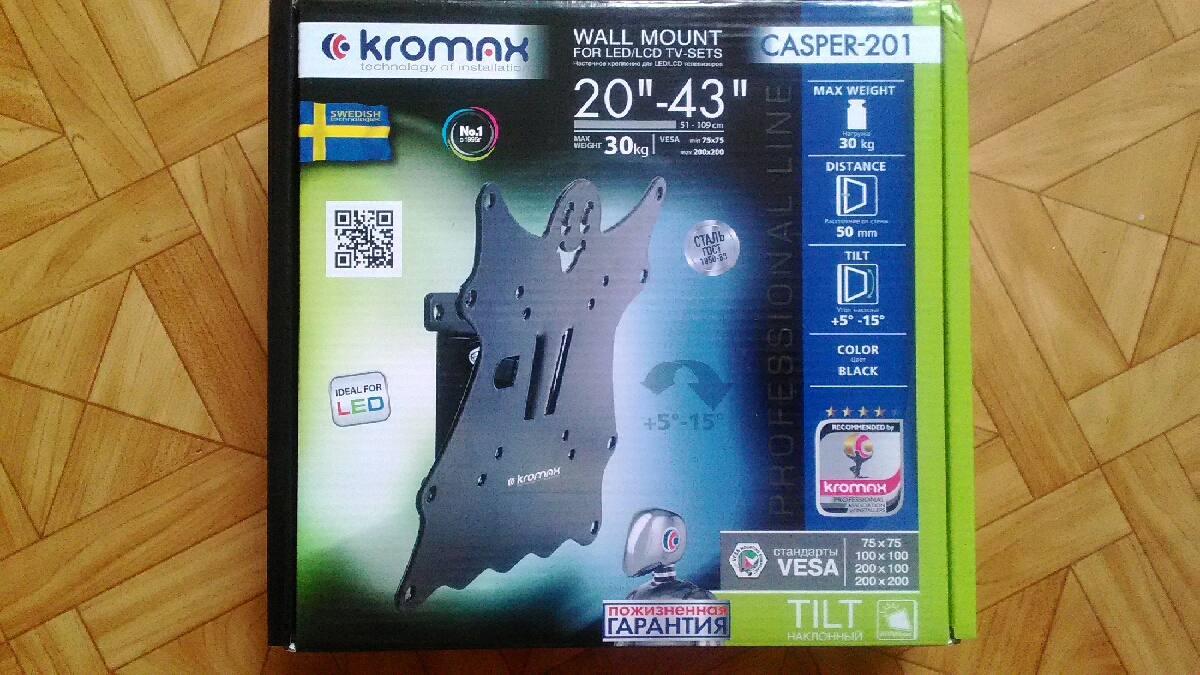 Кронштейн настенный Kromax CASPER-201 для телевизоров 20-43" до 30кг, наклонный, металл, черный