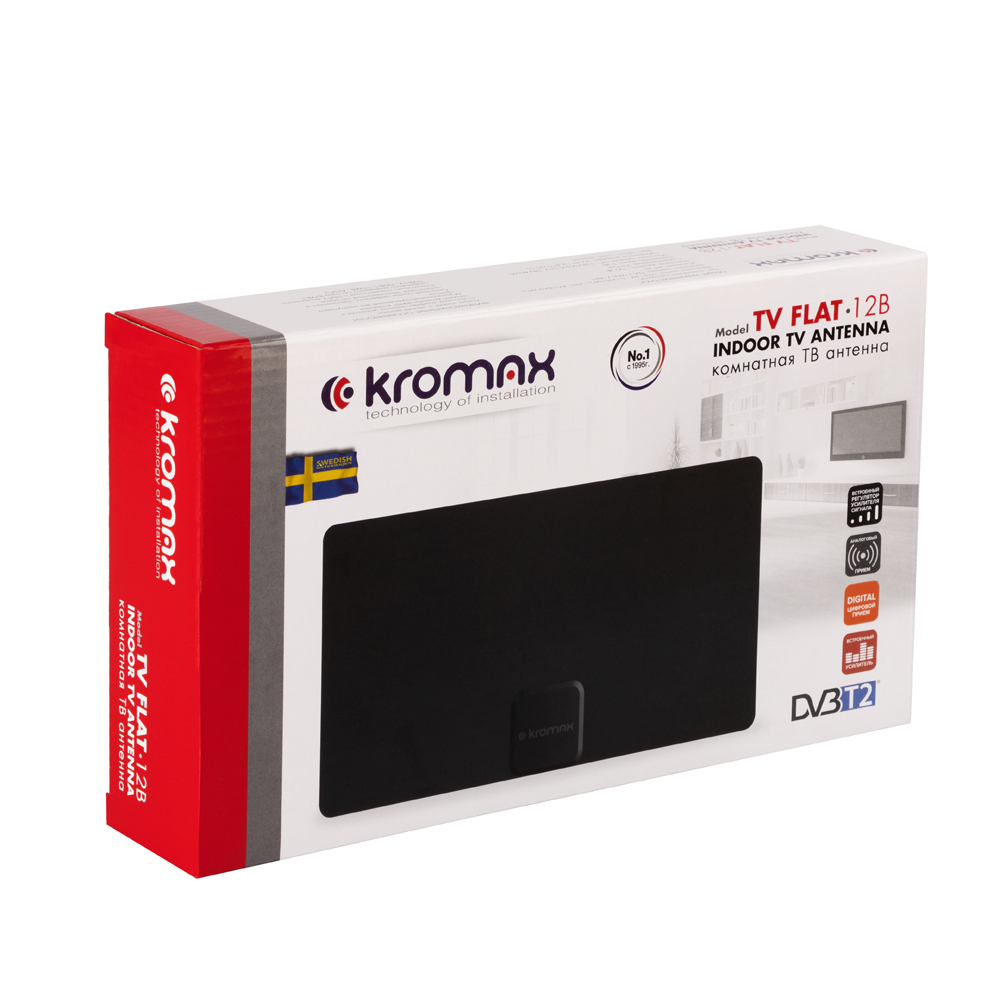 Антенна для цифрового тв телевизионная комнатная активная Kromax TV FLAT-12 black