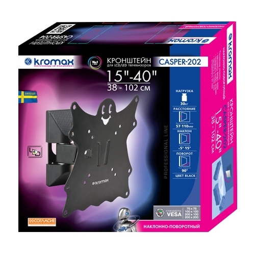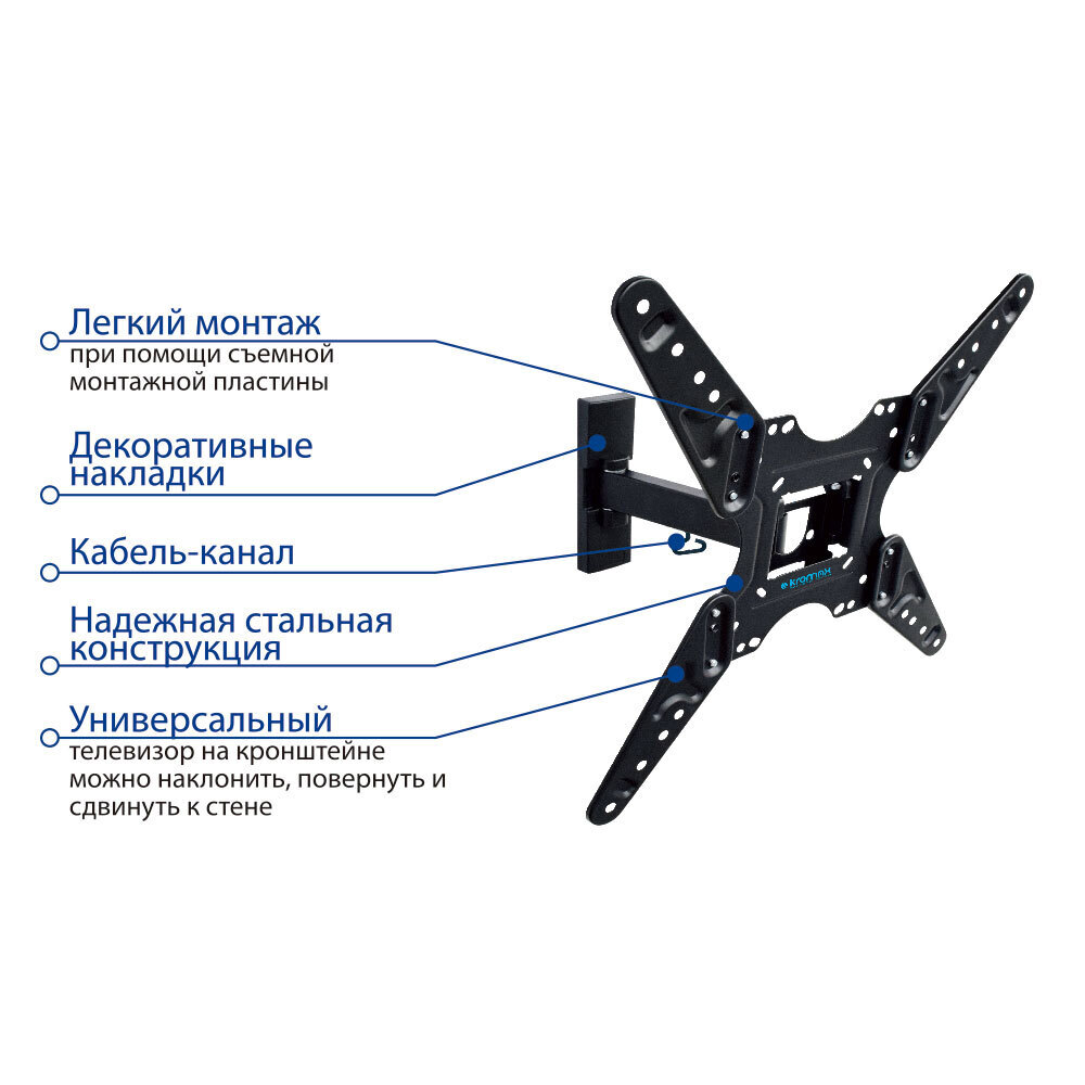 Kromax кронштейн наклонно-поворотный для ТВ OPTIMA-413, 20"-55" до 30 кг