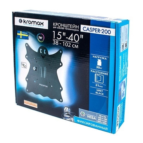 Кронштейн Kromax casper-202 black, для led/lcd tv 15"-40", max 30 кг, 3 ст свободы, наклон +5°-15°,