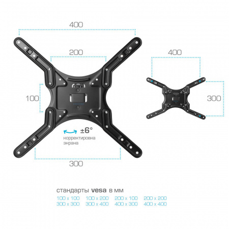 Кронштейн Kromax PIXIS-L-2 26-55" max 50кг VESA 400x400 поворот и наклон