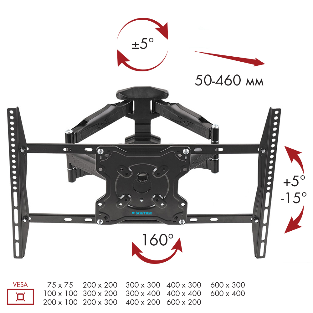 Kromax кронштейн для телевизора наклонно-поворотный ATLANTIS-46, 22"-65" до 45 кг