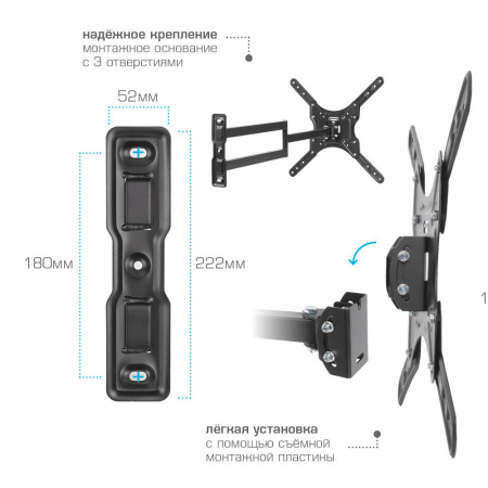 Кронштейн для телевизора настенный наклонно-поворотный Kromax DIX-25, 24"-55" до 20 кг
