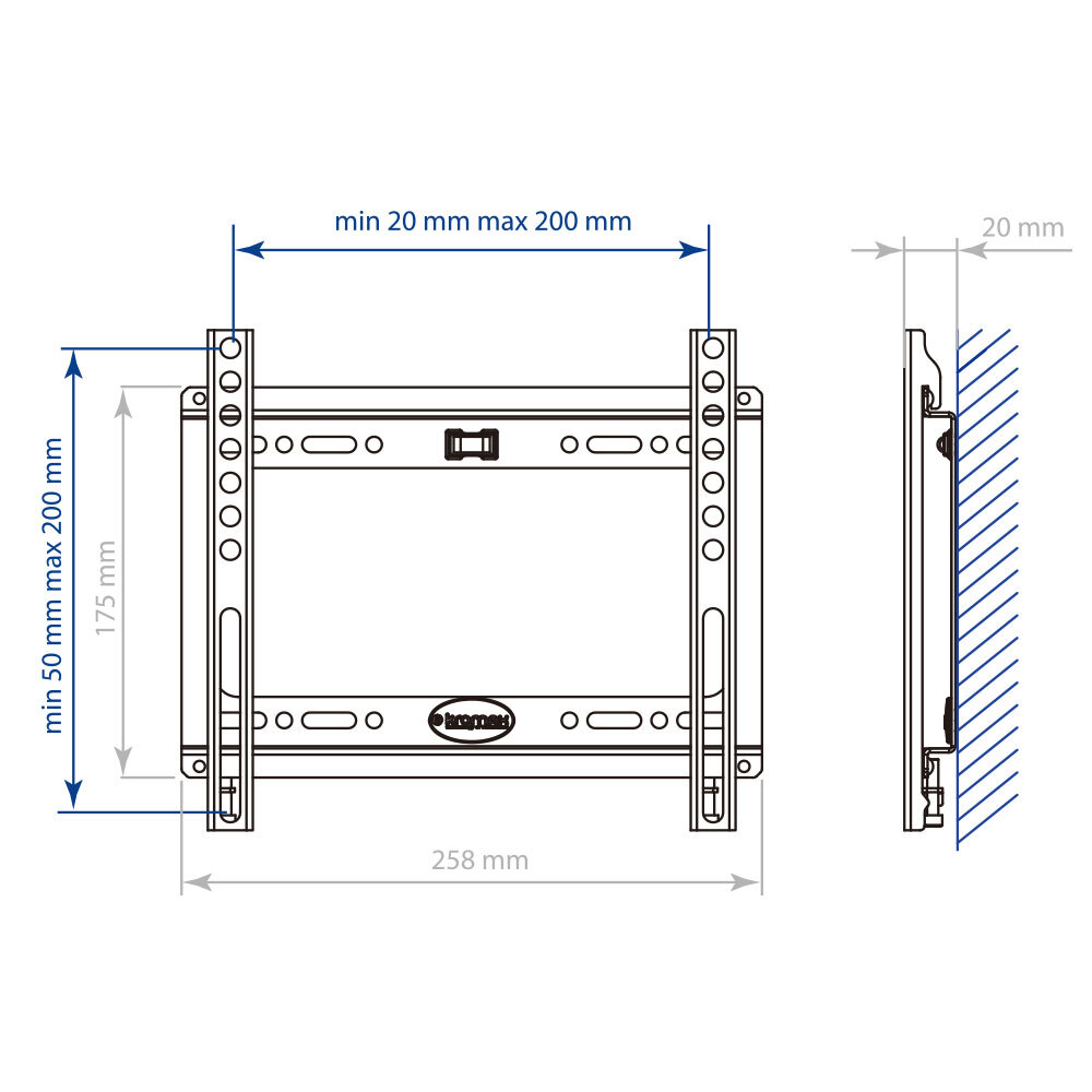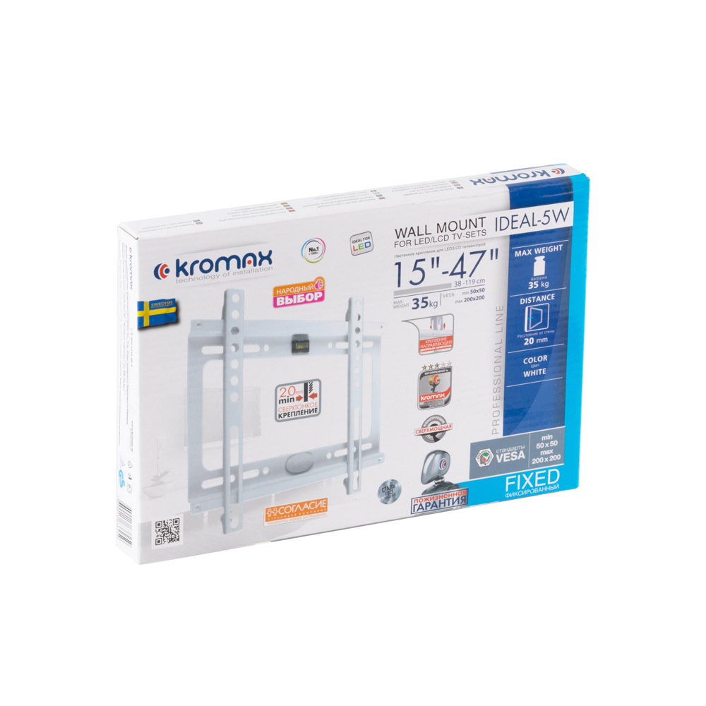 Кронштейн для телевизора настенный фиксированный Kromax IDEAL-5W, 15"-47" до 35 кг