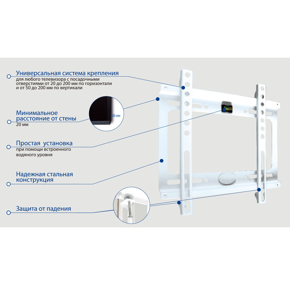 Кронштейн стальной настенный для LED/LCD телевизоров Kromax DIX-18 white.