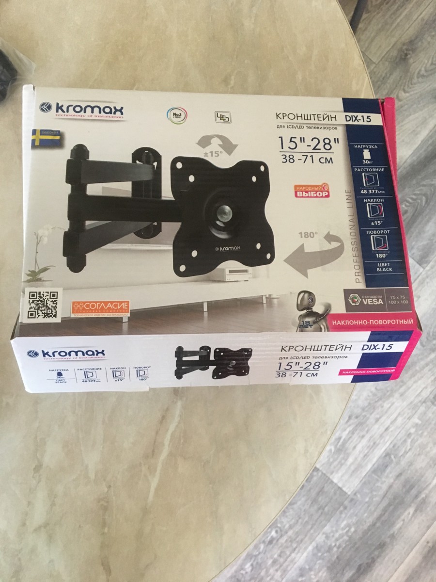 Кронштейн для ТВ Kromax DIX-15 для LED/LCD телевизоров (B0001309242), белый