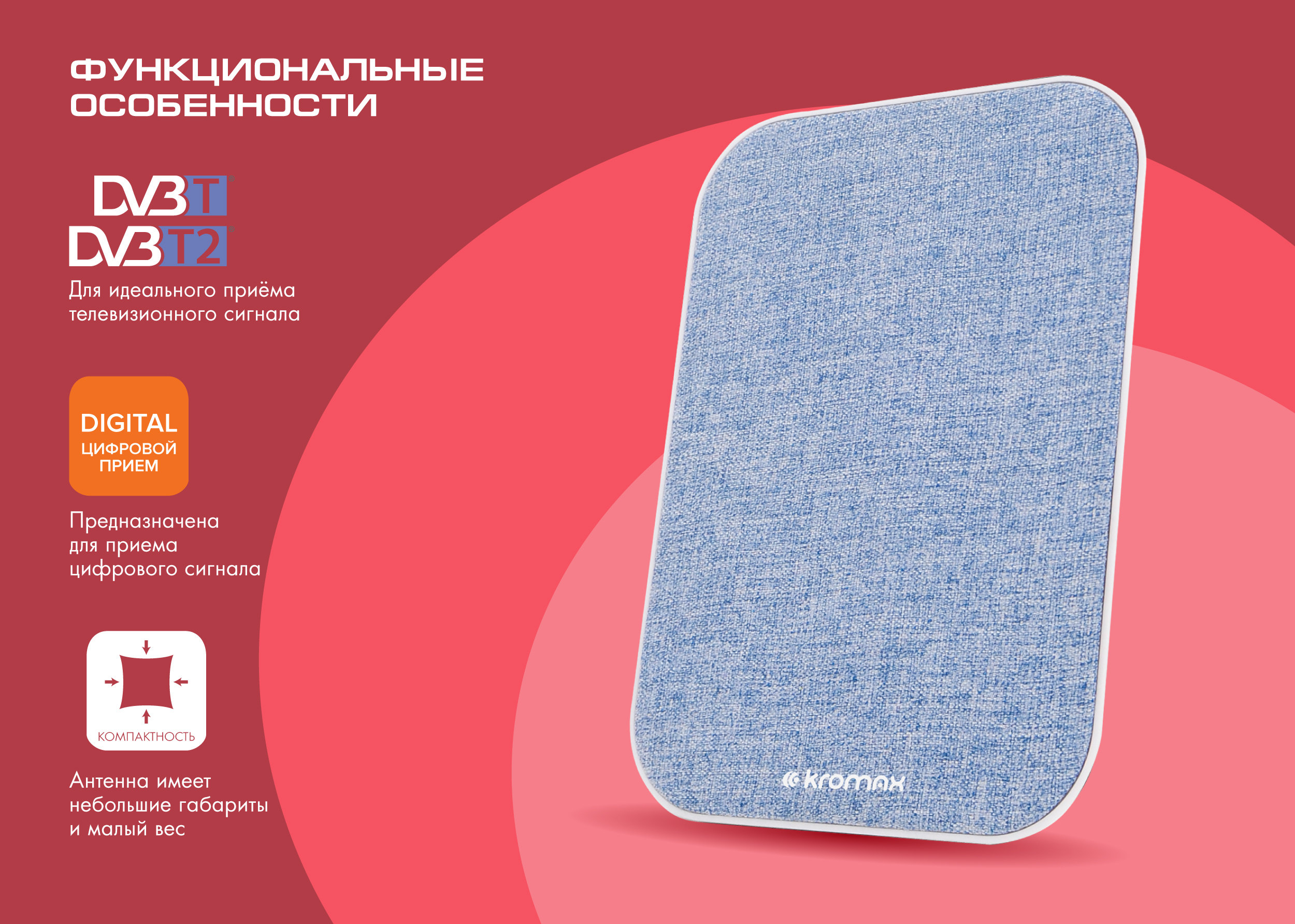 Антенна для цифрового тв телевизионная комнатная активная KROMAX TV FLAT-16