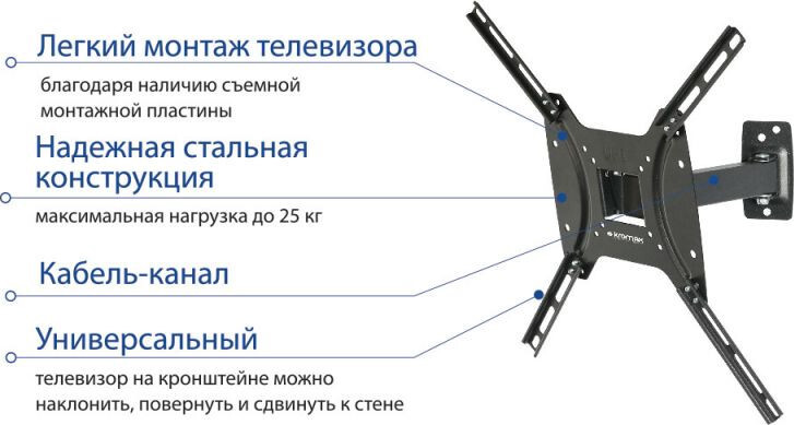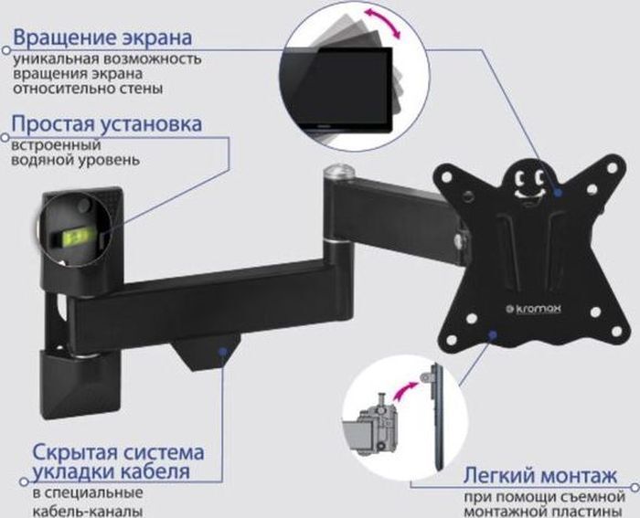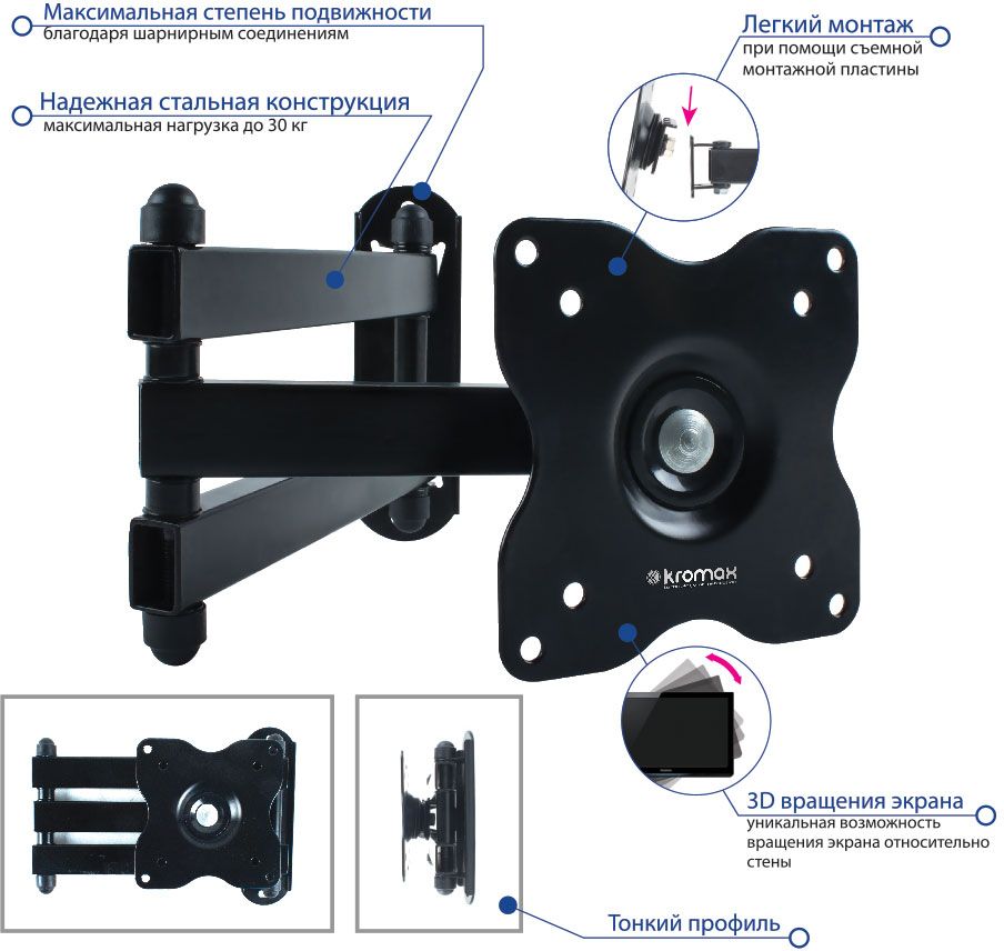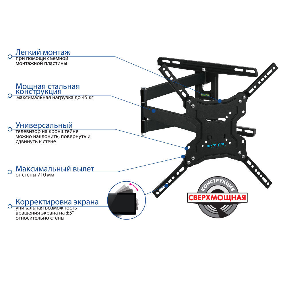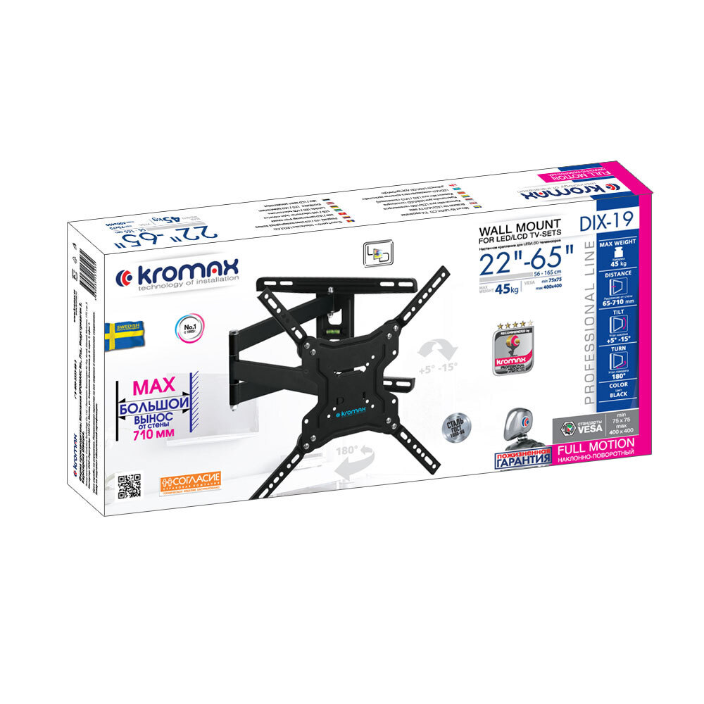 Kromax кронштейн наклонно-поворотный для ТВ DIX-19, 22"-65" до 45 кг