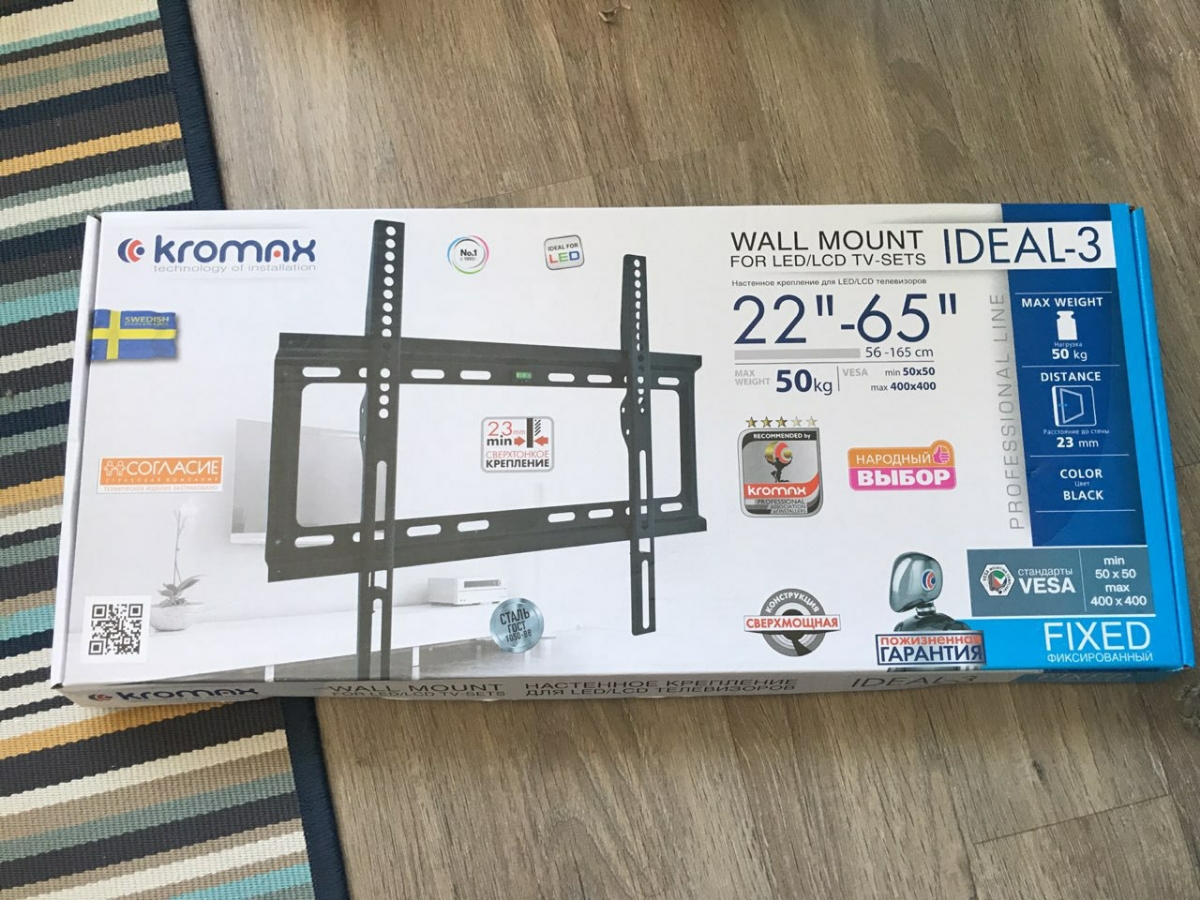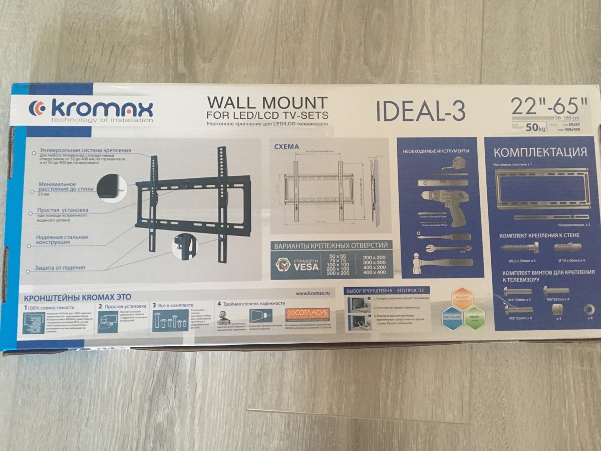 Кронштейн для телевизора настенный наклонный Kromax STAR-22, 32"-90" до 60 кг