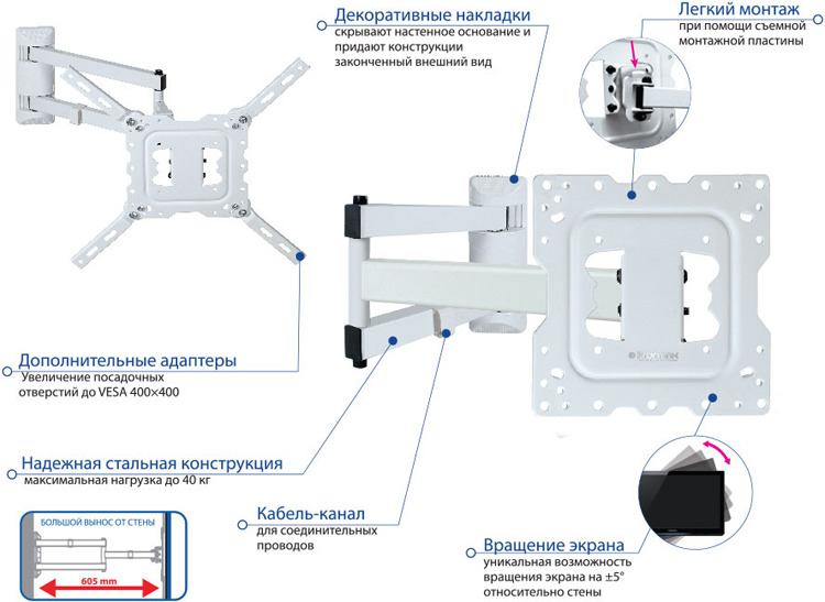 Kromax Кронштейн для телевизора LCD-301 белый 15-37 макс.30кг настенный поворот и наклон