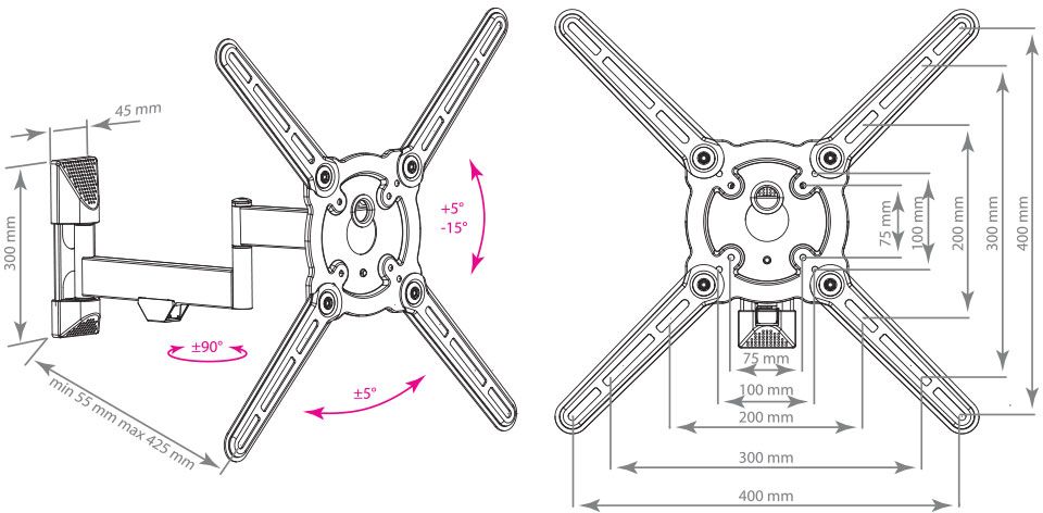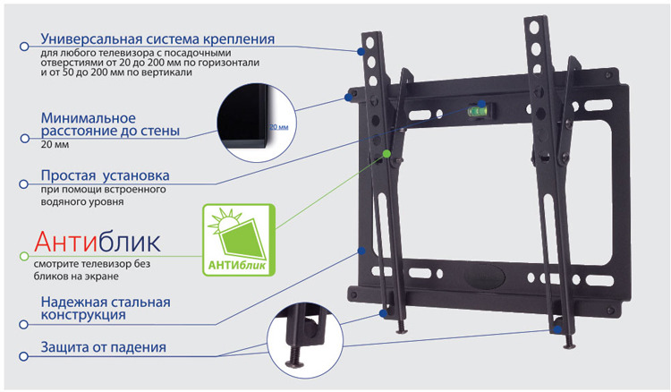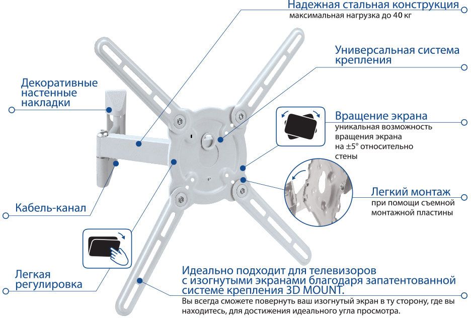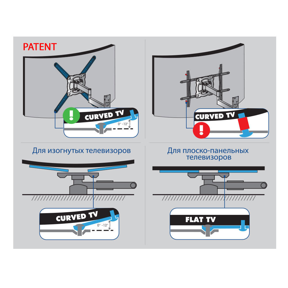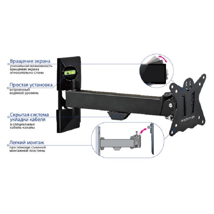 Кронштейн для телевизора настенный наклонно-поворотный Kromax ATLANTIS-15W, 22"-65" до 30 кг