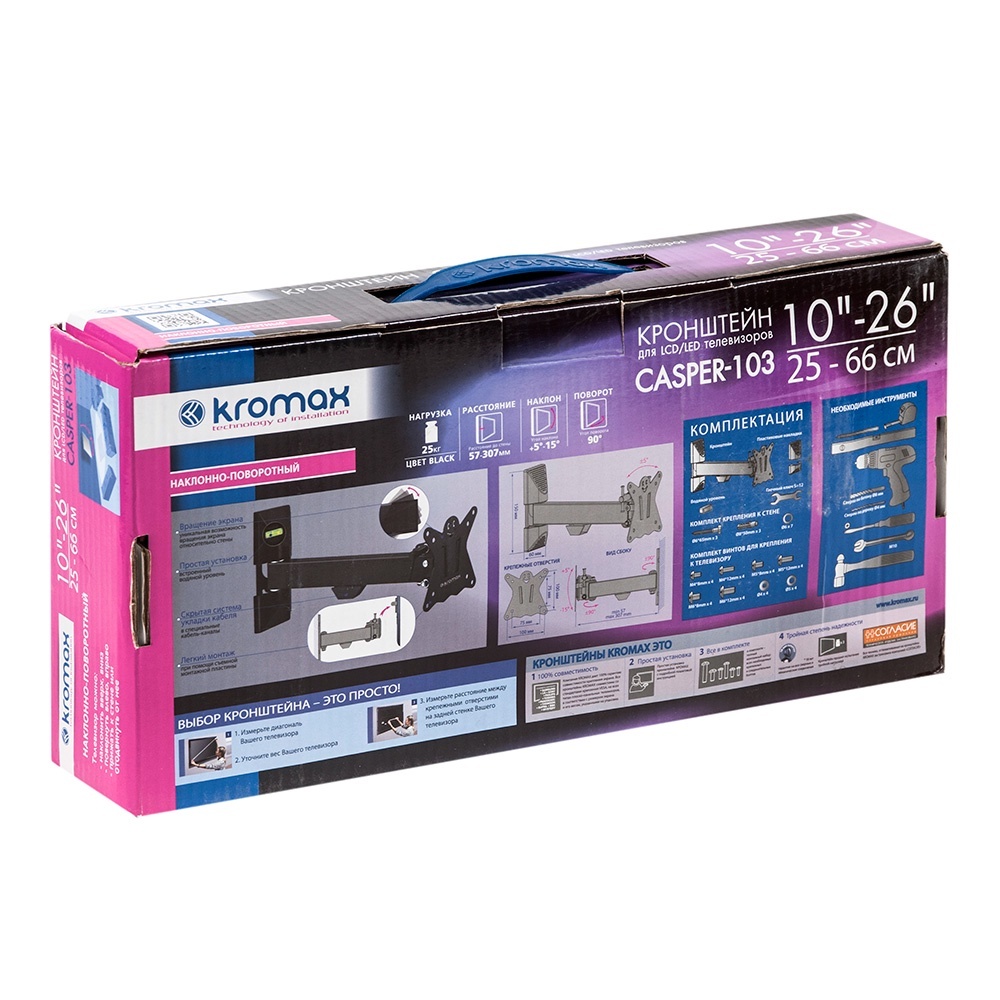 Кронштейн для телевизора Kromax CASPER-103 черный 10"-32" макс.25кг настенный поворот и наклон