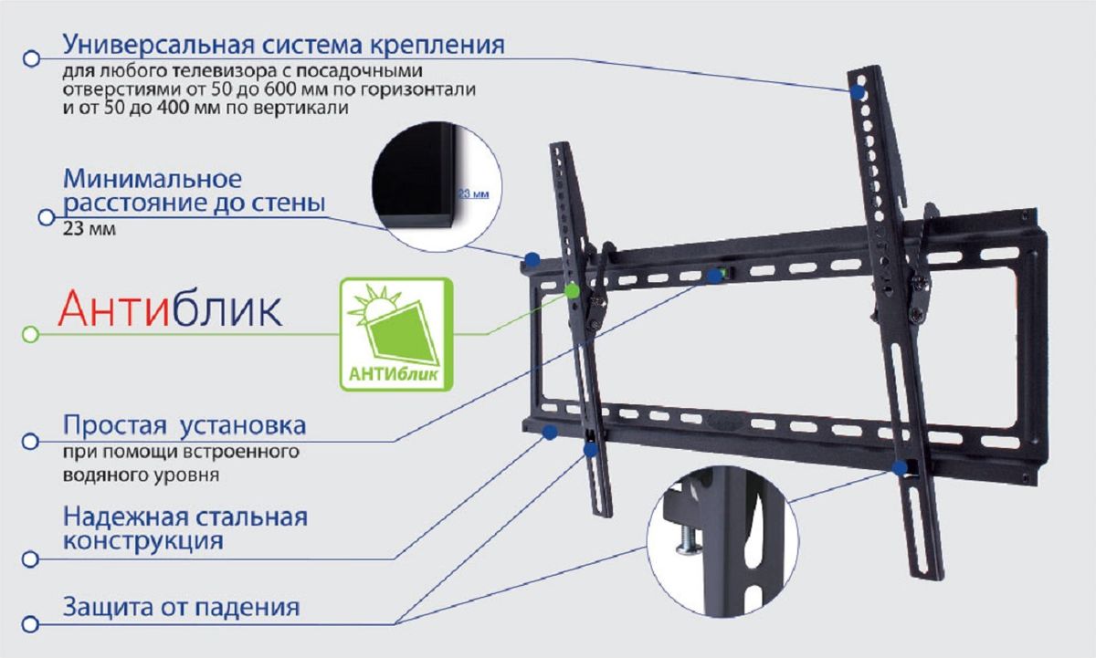Кронштейн для телевизора настенный наклонный Kromax IDEAL-2, 32"-90" до 55 кг