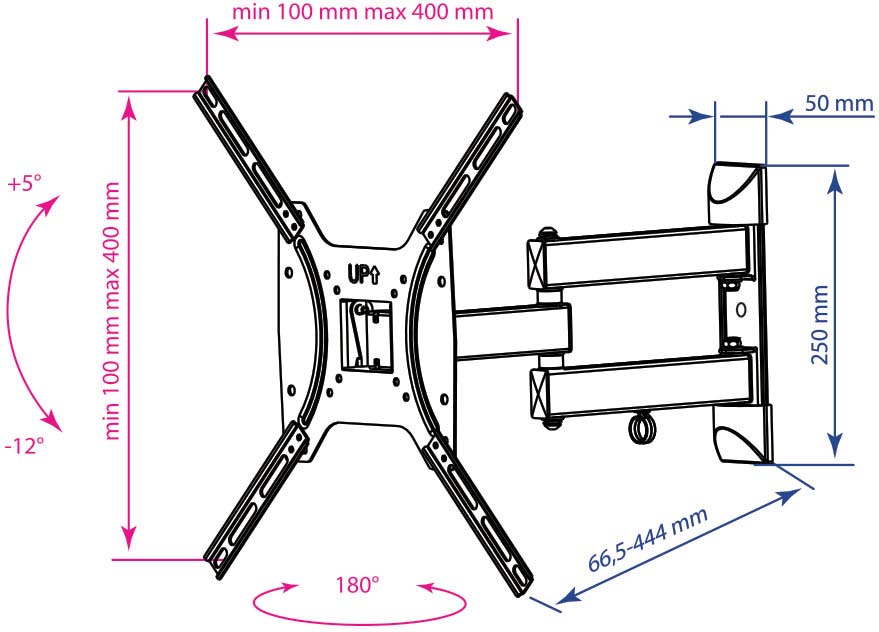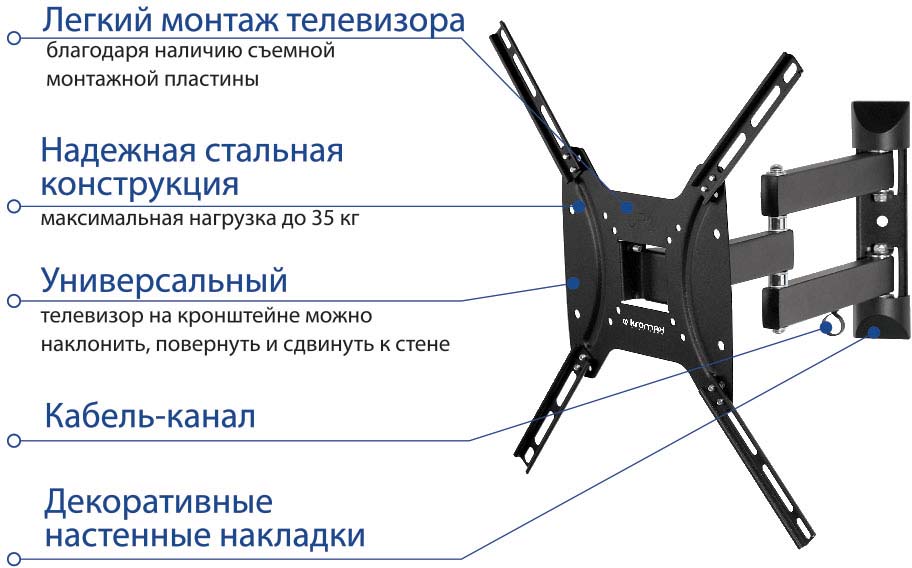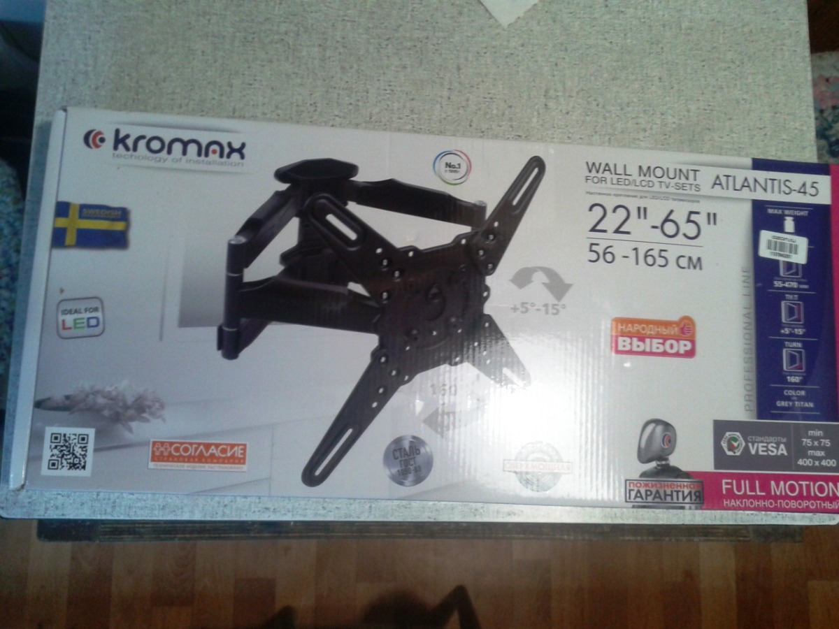 Кронштейн для телевизора настенный наклонно-поворотный Kromax ATLANTIS-45W, 22"-65" до 45 кг