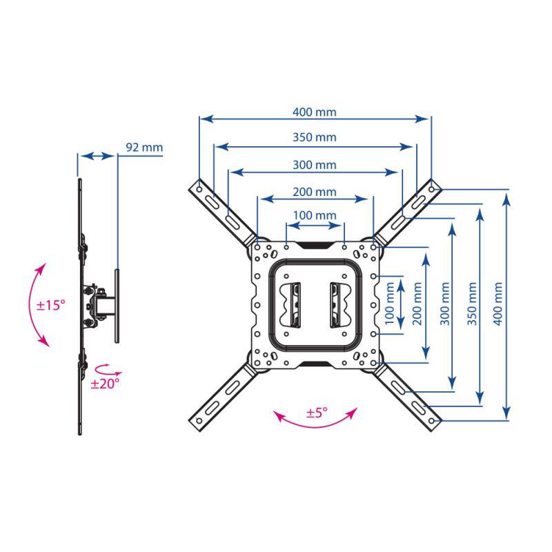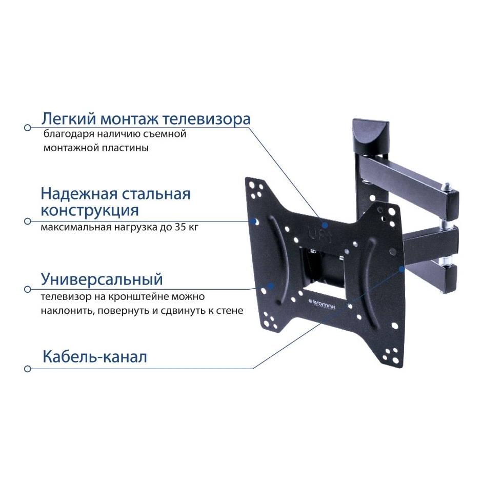 Кронштейн наклонно-поворотный Kromax CASPER-104 10-26' до 15кг Vesa до 100x100 черный