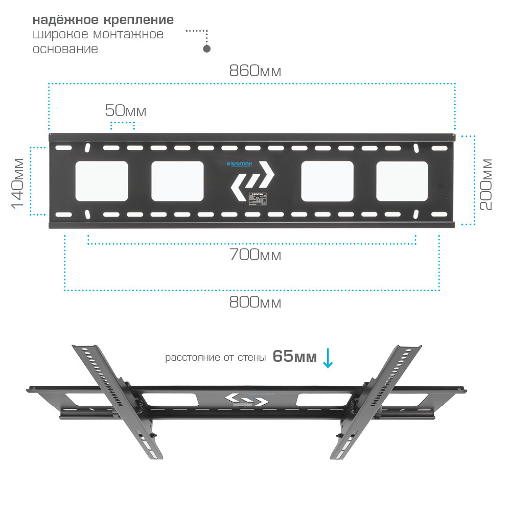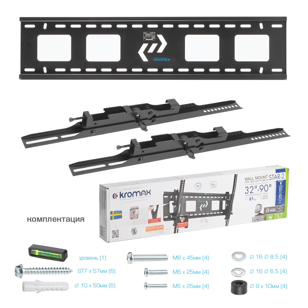 Кронштейн для телевизора настенный наклонный Kromax STAR-2, 32"-90" до 81 кг
