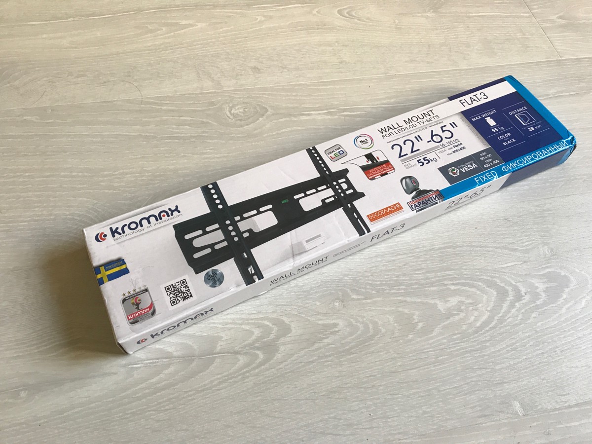 Кронштейн настенный Kromax FLAT-3 для телевизоров 22-65" до 50кг, металл, черный
