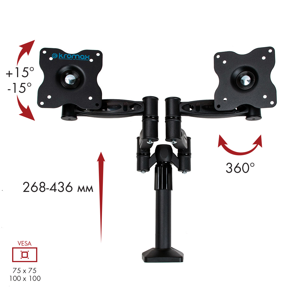 Кронштейн для монитора Kromax OFFICE-3, 10"-26" до 2x12 кг