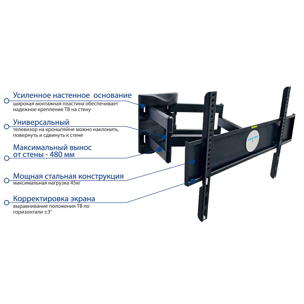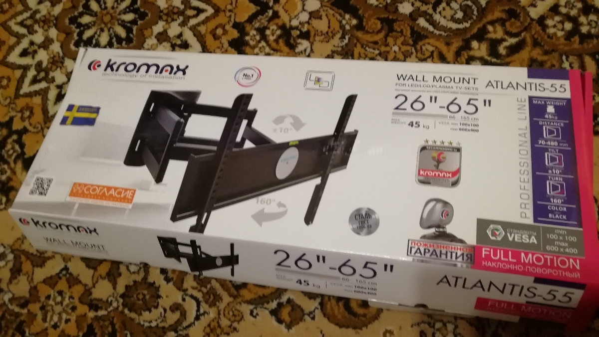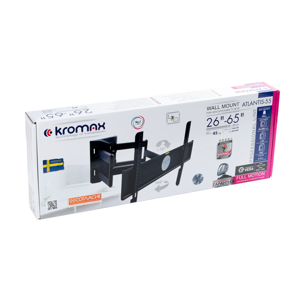 Kromax кронштейн для телевизора наклонно-поворотный ATLANTIS-55, 26"-65" до 45 кг
